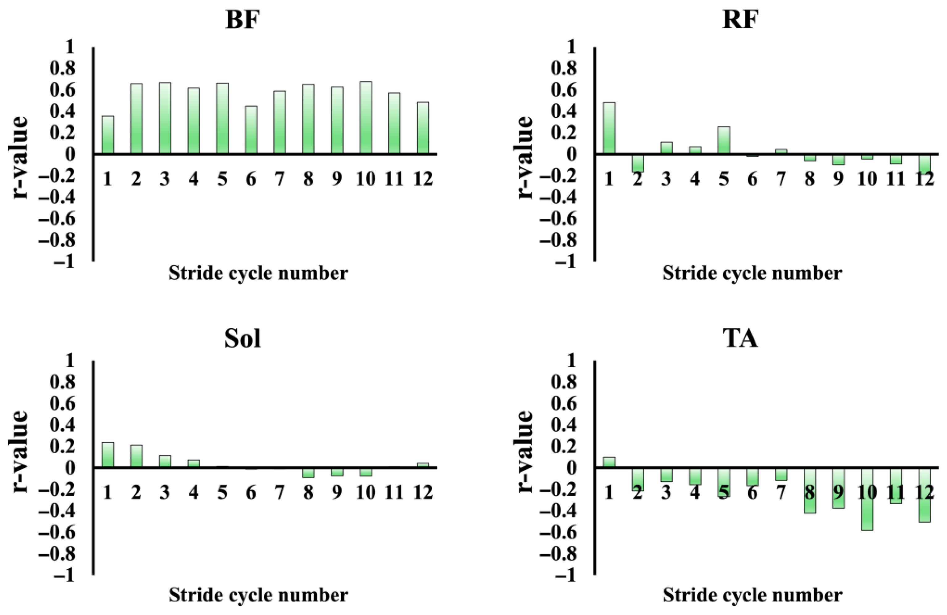 - Kakehata, G.; Goto, Y.; Yokoyama, H.; Iso, S.; Kanosue, K. Interlimb and Intralimb Coordination of Rectus Femoris and Biceps Femoris Muscles at Different Running Speeds. Med. Sci. Sports Exerc. 2023, 55, 945–956. [Google Scholar] [CrossRef] [PubMed]