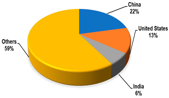 An analysis of the number of publications by country (see Figure 4) shows that China is the leader (1/5 of all publications), followed by the United States, and third place goes to India. The remaining countries provide almost 60% of publications.