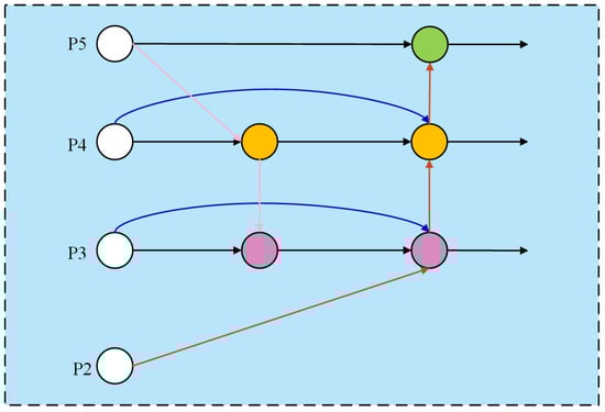 To address these issues, we introduce the Bidirectional Feature Pyramid Network (BiFPN) [30] as the neck structure, and its structure is shown in Figure 5. This architecture is designed to reduce computational complexity and enhance multi-scale feature fusion through efficient bidirectional cross-scale connections and adaptive weighted fusion. It effectively preserves and integrates high-resolution details from shallow layers, emphasizing discriminative features of tea targets while eliminating redundant components. The workflow is as follows: