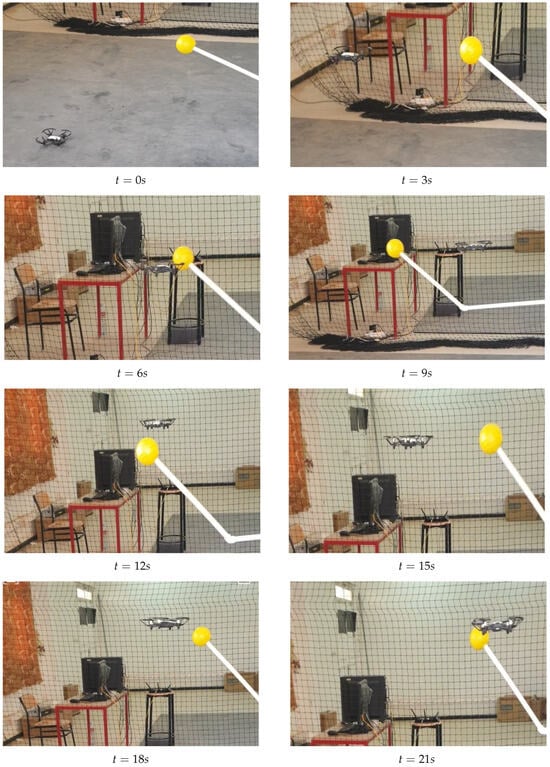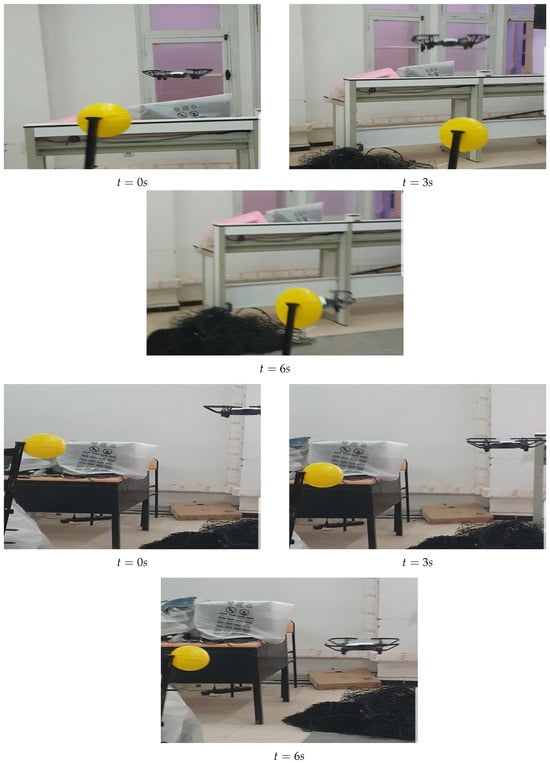 Due to the abundance of objects in the environment, our method remains robust and effective even when environmental conditions change, consistently ensuring accurate tracking of the yellow ball. Figure 11 illustrates the UAV and the target following random trajectories, with the ball varying its speed throughout the sequence. In this scenario, the DJI Tello drone successfully tracks the target, although a slight delay is observed during periods of rapid ball movement.