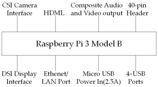 This paper uses the Raspberry Pi 3 Model B as the platform base, as shown in Figure 4 [35]. The Raspberry Pi 3 Model B is a single-board computer driven by the Broadcom BCM2837 chipset, featuring a 1.2 GHz 64-bit quad-core ARM Cortex-A53 processor. It comes with built-in 802.11 b/g/n wireless LAN and Bluetooth 4.1 (including Classic and Low Energy BLE) and a dual-core Video core IV® multimedia coprocessor. Its interfaces include a Micro USB power connector (supporting 2.5A power supply), a 10/100 Ethernet port, an HDMI video/audio connector, an RCA video/audio connector, four USB 2.0 ports, 40 GPIO pins, a DSI display connector, and a microSD card slot. Additionally, it is equipped with an on-board antenna for wireless connectivity.