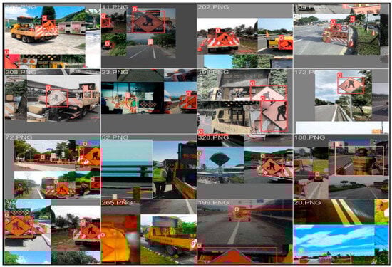 The dataset comprises images of highway construction zones collected from multiple sources, including on-line platforms, dashcam recordings from test vehicles and official surveillance footage provided by the national highway authority. All images were captured at a resolution of 1920 × 1080 (full HD) pixels to ensure sufficient visual detail for object detection. A total of 2140 raw images were gathered, containing approximately 785 labeled construction vehicles and signs, 927 labeled roadside warning signs and 428 labeled electronic flag bearers. Annotation was performed using the computer vision annotation tool (CVAT), with all labels saved in YOLO format. Each image was manually annotated by two independent annotators, achieving an inter-annotator agreement rate of 92.4%, which ensures high labeling consistency and reliability.
