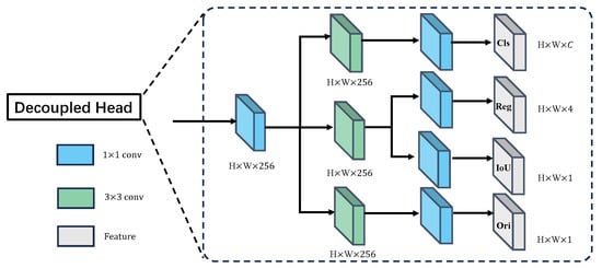 Feature map obtained from PANet [38] is fed into the decoupling head. First, it goes through a convolution block for feature dimension reduction, resulting in a feature map. It then passes through three parallel convolution layers, one for classification, one for localization and confidence estimation, and one for orientation estimation. Finally, each of them goes through a convolution for four tasks, respectively.