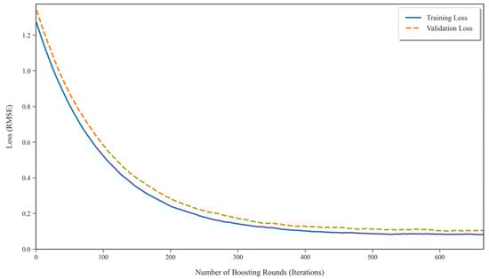 Gradient Boosting Decision Tree (GBDT), proposed by Friedman in 2001, is a boosting algorithm. While the standard gradient boosting algorithm only utilizes first-order derivatives in its objective function, XGBoost is an improvement upon it. The core idea of XGBoost is to combine multiple weak learners into a single strong classifier. It extends the loss function by introducing regularization and a second-order Taylor series expansion, which effectively controls model complexity, allows the model to converge rapidly [41,42], and reduces the risk of overfitting [43]. XGBoost is significantly superior to the traditional gradient boosting algorithm in terms of both prediction accuracy and training speed.