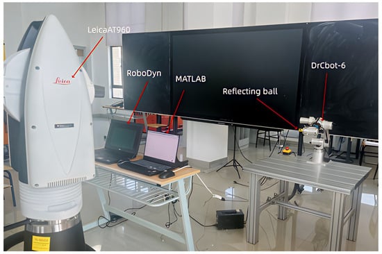 The DrCbot-6 industrial robot used in this paper is a 6-degree-of-freedom serial robot. The schematic diagram of its mechanical structure is shown in Figure 1a, and the schematic diagram of the joint coordinate system is shown in Figure 1b.