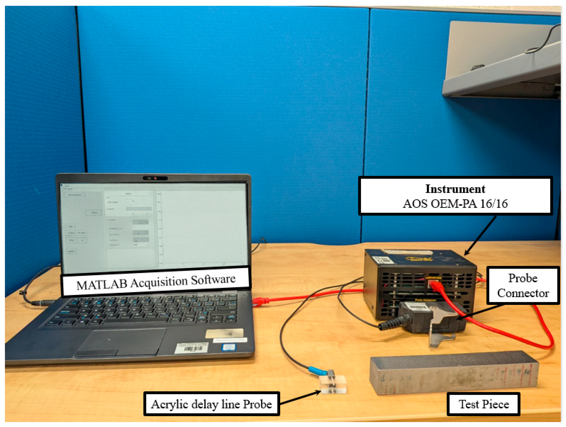 The data acquisition process in this study was facilitated through the use of an OEM phased array ultrasonic testing (PAUT) system provided by AOS. The system offered core device functionality and an integrated focal law calculator essential for PAUT applications. Capitalizing on the OEM-PA platform’s semi-open-source architecture, the existing software infrastructure was extended and adapted to meet the specific needs for inspection and imaging workflows.