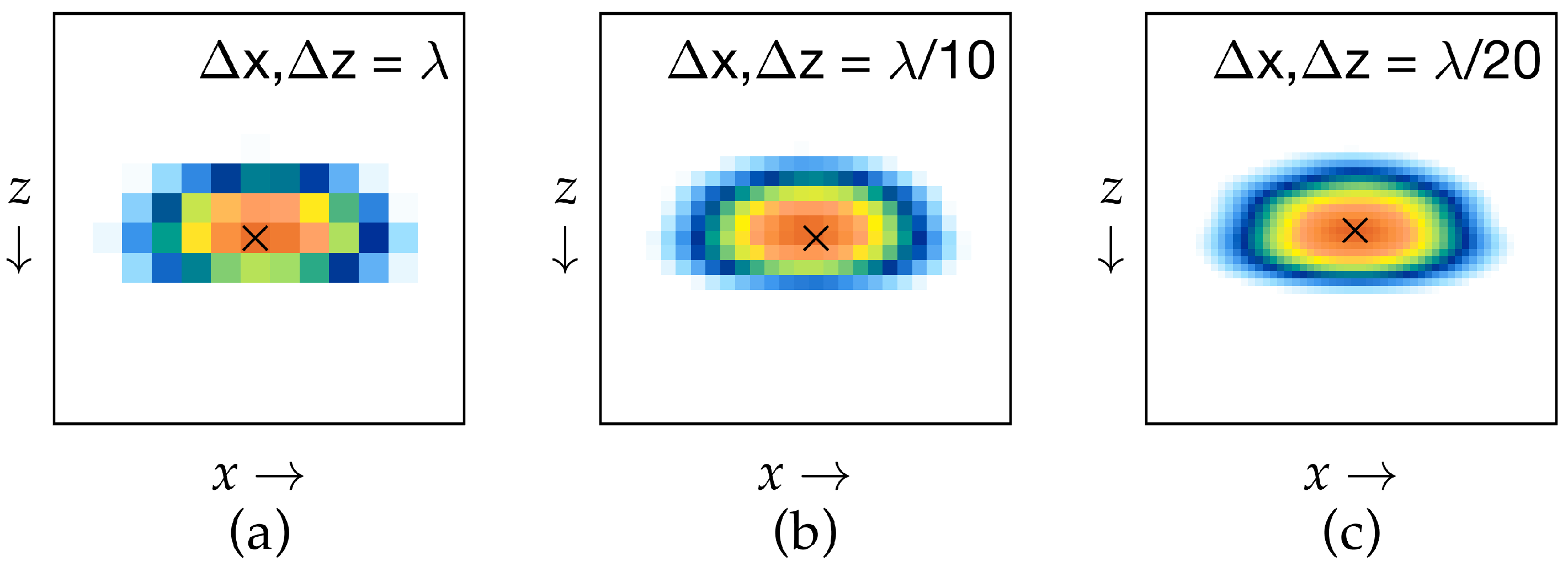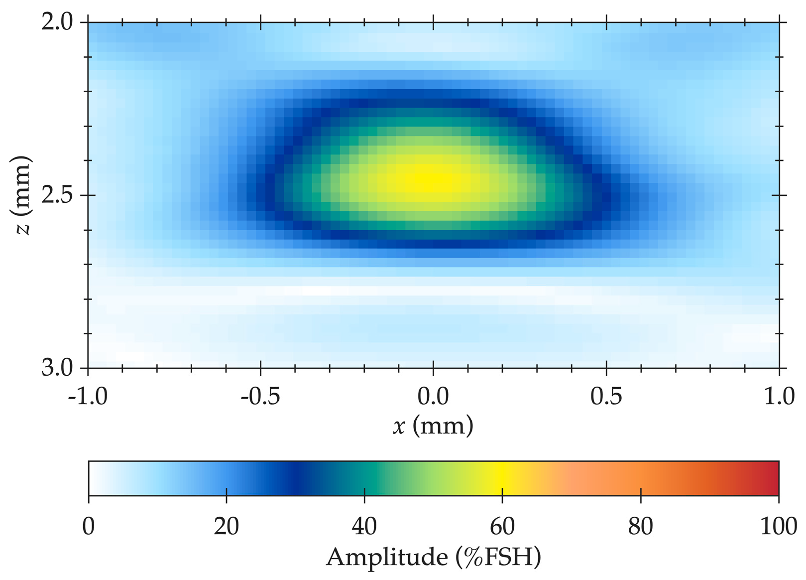 However, widening of flaw indications was observed in TFM images at larger probe offsets due to beam divergence. This effect could be mitigated through post-processing techniques, such as point spread function based deconvolution, which models the system response to a point reflector and corrects for geometric spreading [