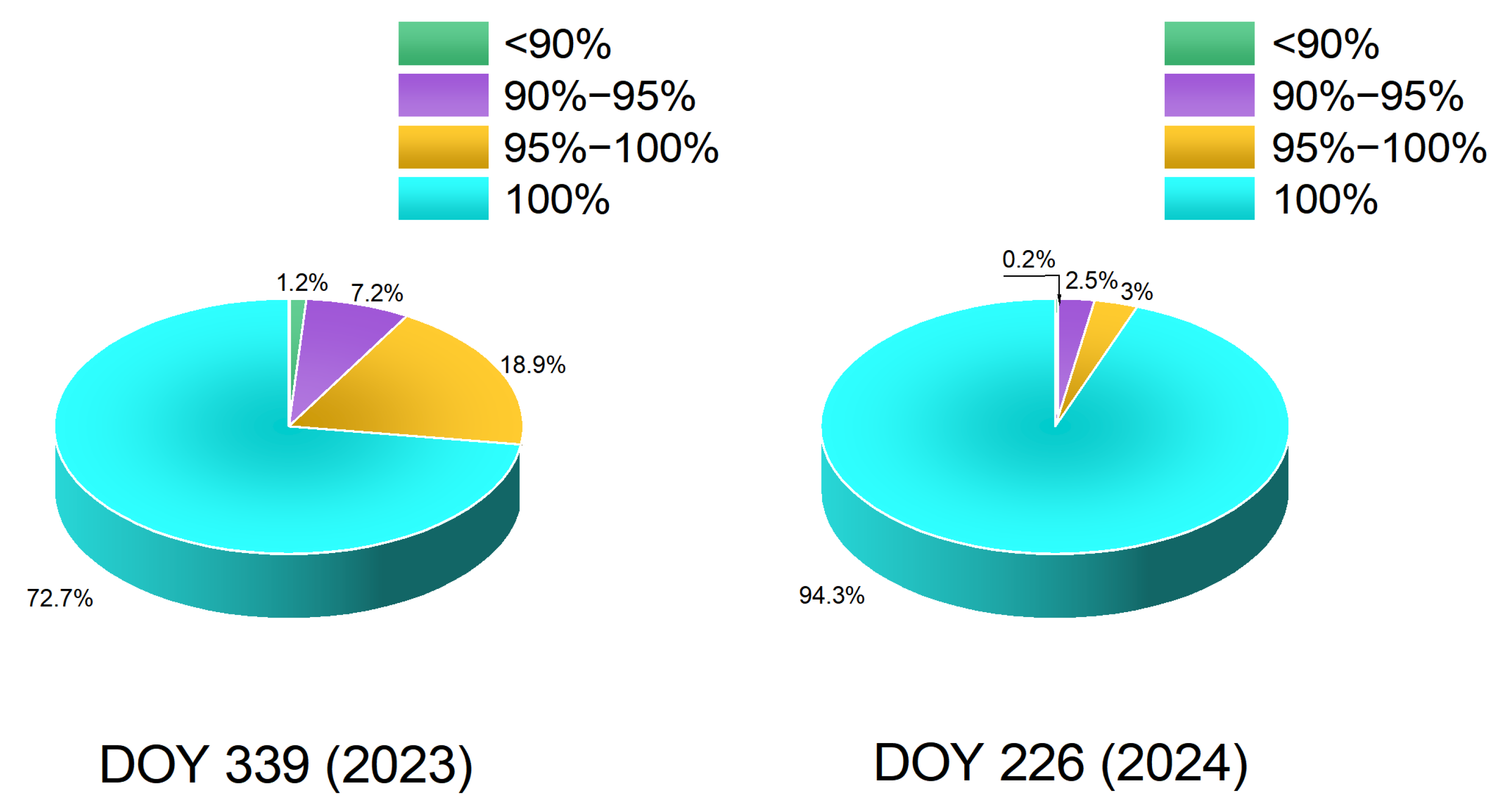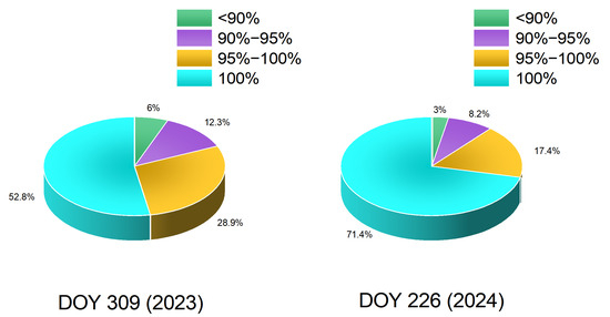 The correctly fixed ambiguity rates for DOY 309 (2023) and DOY 226 (2024) are shown in