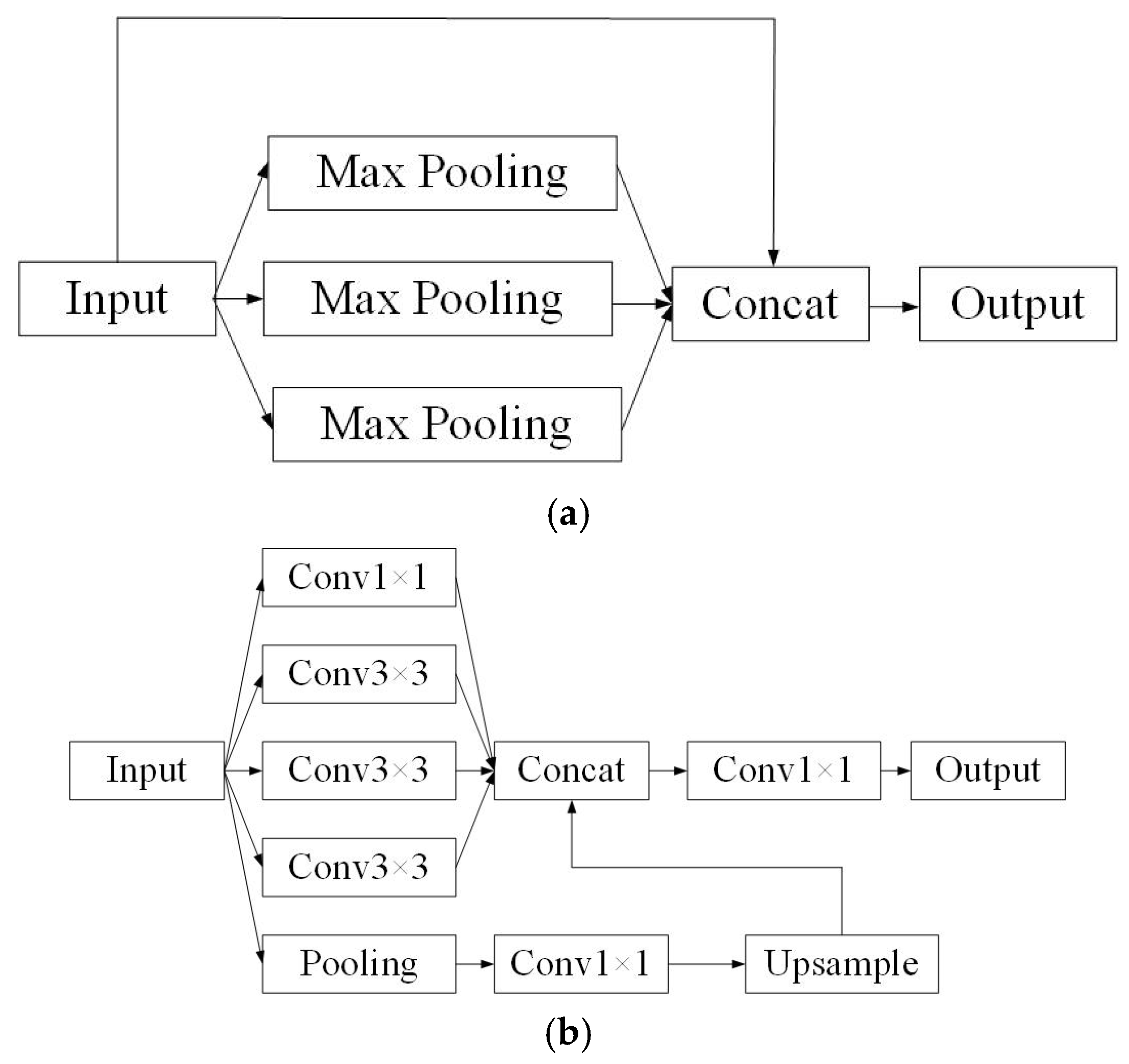 Figure 4a, it achieves this by employing multiple parallel max-pooling layers, each with a different kernel size. This allows the model to capture feature information at various scales. However, we argue that it still cannot adequately capture the relations in global and local contexts when compared to our proposed alternative. The theoretical advantage of replacing SPP with ASPP lies in how they capture multi-scale information. SPP utilizes max-pooling with different kernel sizes, which aggressively down-samples features and can lead to a loss of fine-grained spatial detail. In contrast, ASPP employs atrous (dilated) convolutions with varying dilation rates. This allows the model to probe features at multiple scales and capture a wider context without reducing spatial resolution. For WTB icing detection, this is particularly beneficial: a small dilation rate can focus on the texture of fine ice crystals, while a large dilation rate can perceive the overall shape and extent of the ice coverage along the blade’s edge. This richer, multi-scale contextual information, gathered without sacrificing spatial detail, theoretically leads to more robust feature representation and, consequently, superior detection performance compared to the SPP module. By applying different expansion rate expansion factors to the input features, the convolution operation is completed, multiple feature maps and the feature maps of the pooled input features are merged, and finally, the fused features are output using a