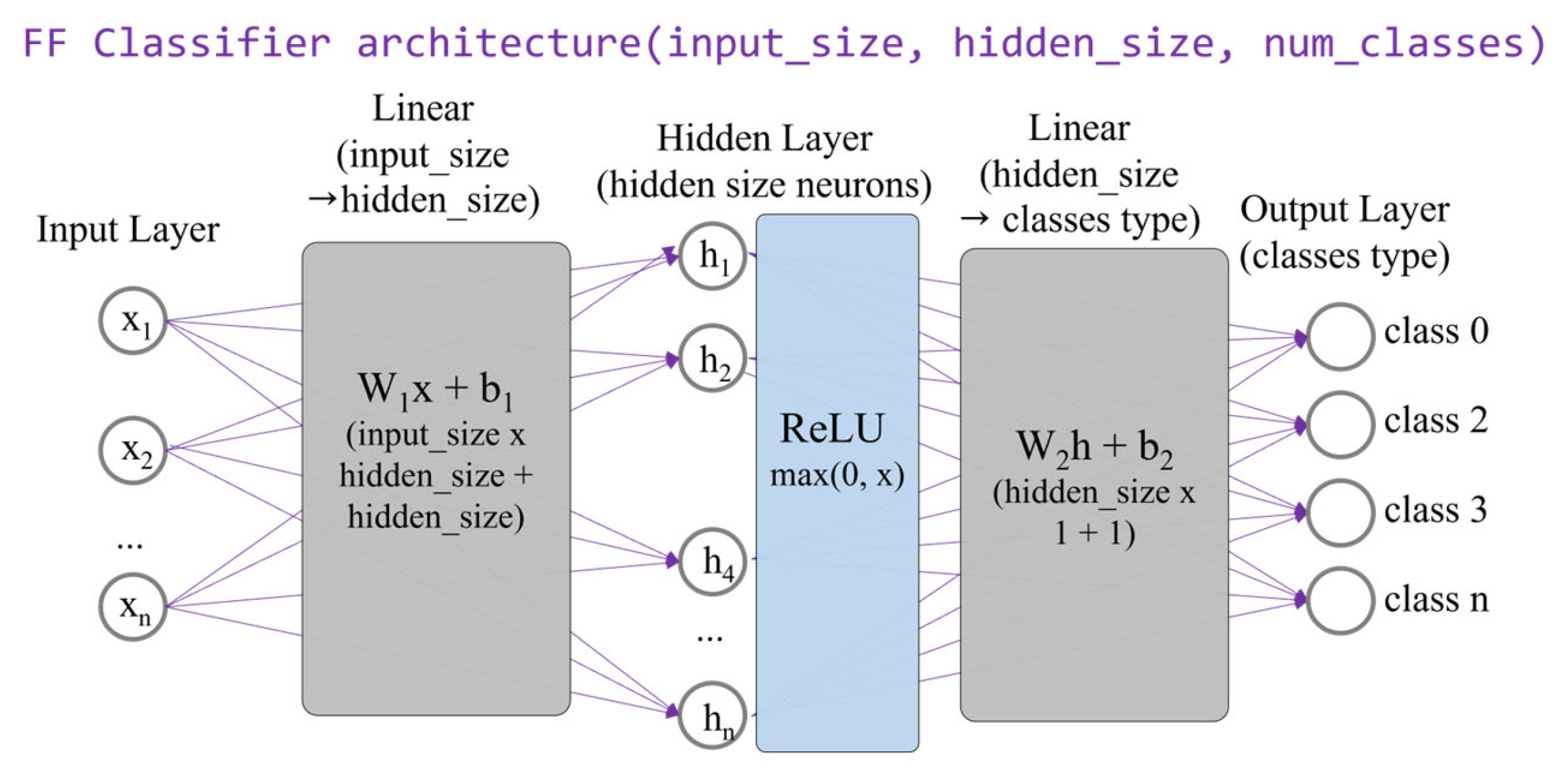 (Step 2. Classification): A lightweight classifier—either an FF network or a DNN—uses the latent features to label traffic as normal (BENIGN) or abnormal (ATTACK).