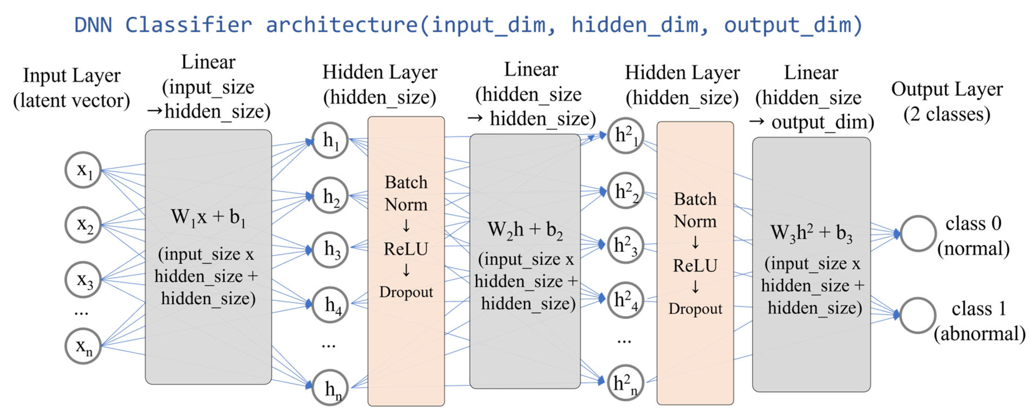 In this study, the performance of the SAE-FF was compared with that of the multi-layer perceptron-based SAE-DNN. Both models employed the same input feature vectors and preprocessing procedures. The main training parameters were set as follows: hidden_dim = 4, sparsity = 0.05, β = 1 × 10−3, and LR = 1 × 10−3. For sparsity, values of 0.03, 0.04, and 0.05 were tested, and the highest accuracy and most stable performance were achieved at 0.05.