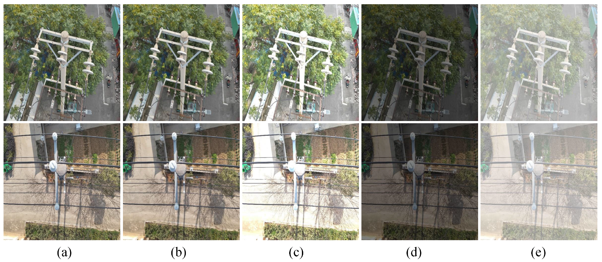 These environmental perturbations enable systematic evaluation of TDD-YOLO’s performance to practical distribution line inspection tasks. Details of image enhancement approaches are displayed in