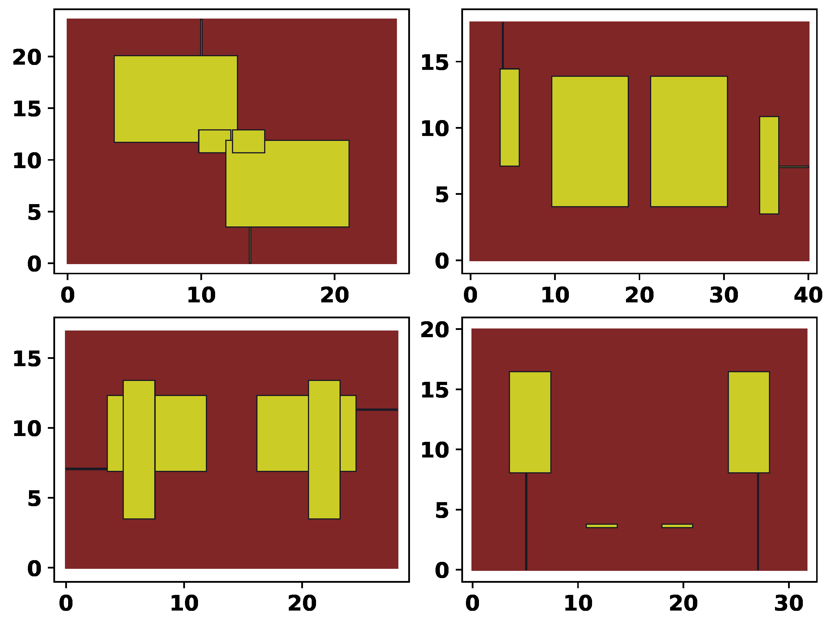 - The ports length and should be less then longer than the gap between the edge of the substrate and the main rectangles, which is mm. That is, .