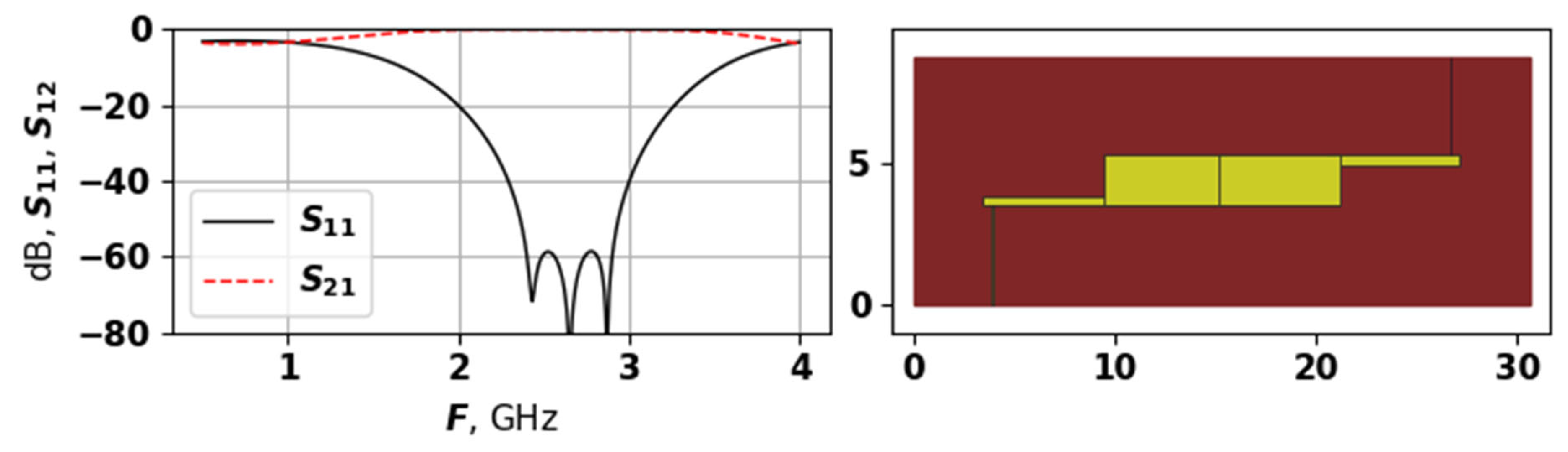 - Zou, X.; Song, K.; Fan, Y. Ultracompact Planar Filter Design Based on Pixelated Configurations. IEEE Trans. Microw. Theory Tech. 2025, 73, 1725–1740. [Google Scholar] [CrossRef]