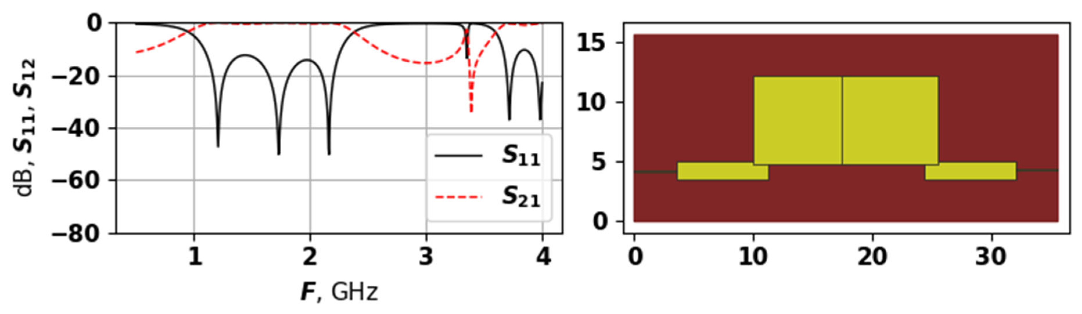 - Belyaev, B.A.; Khodenkov, S.A.; Galeev, R.G.; Shabanov, V.F. Investigation of microstrip structures of wideband bandpass filters. Dokl. Phys. 2015, 60, 95–101. [Google Scholar] [CrossRef]