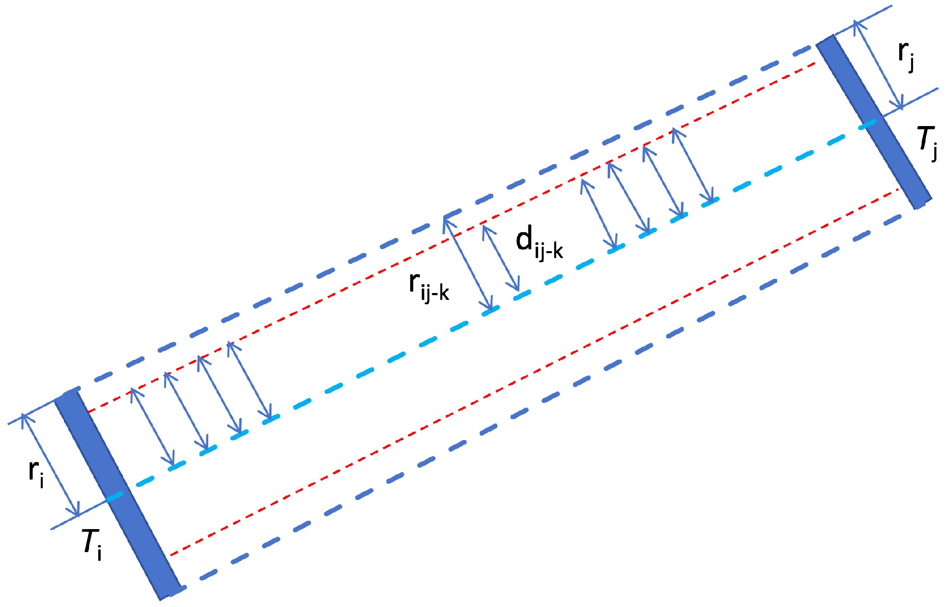 - Otherwise, if the point lies between the line segment connecting pylons i and , assign the point to the segment ;