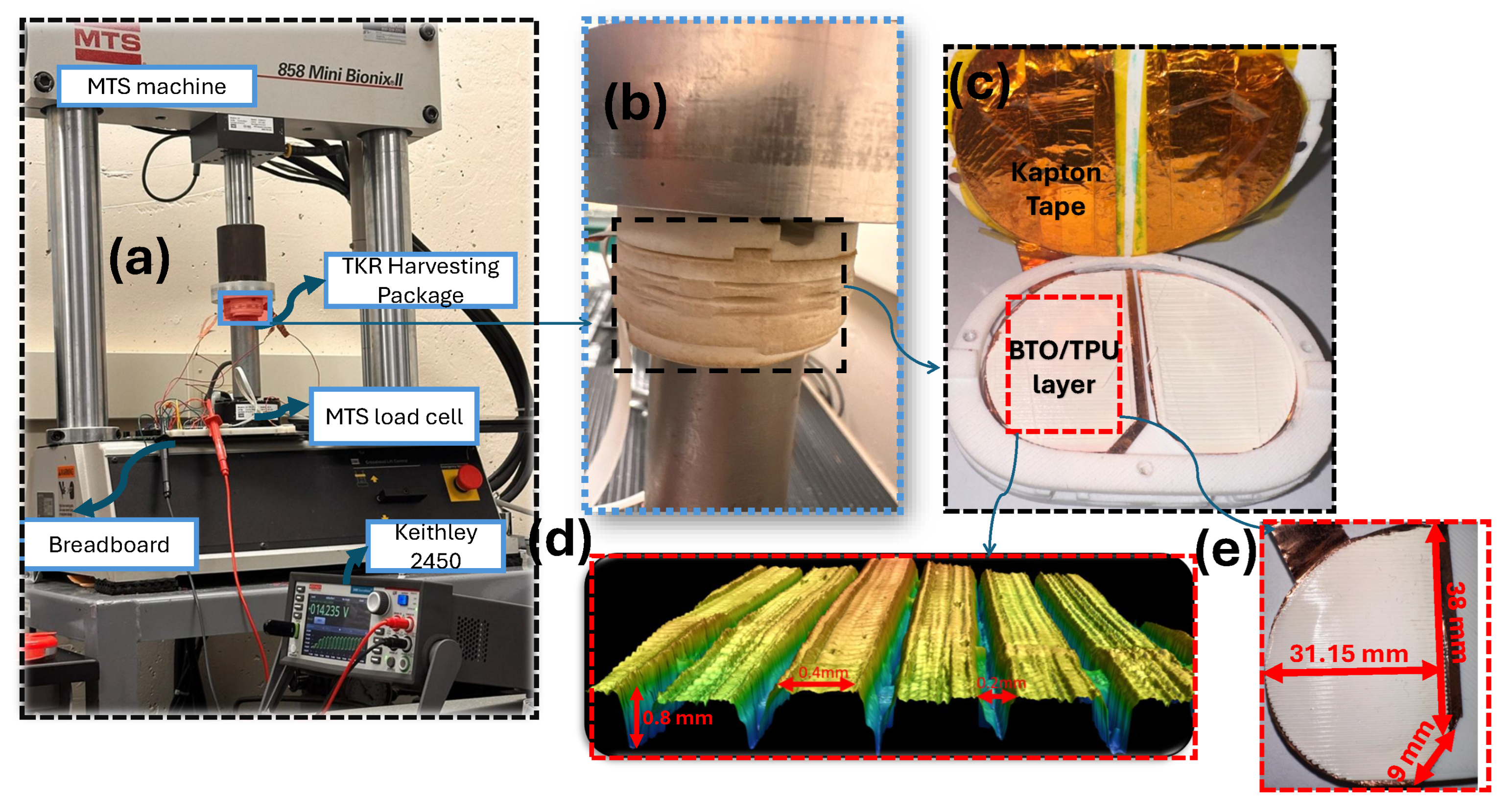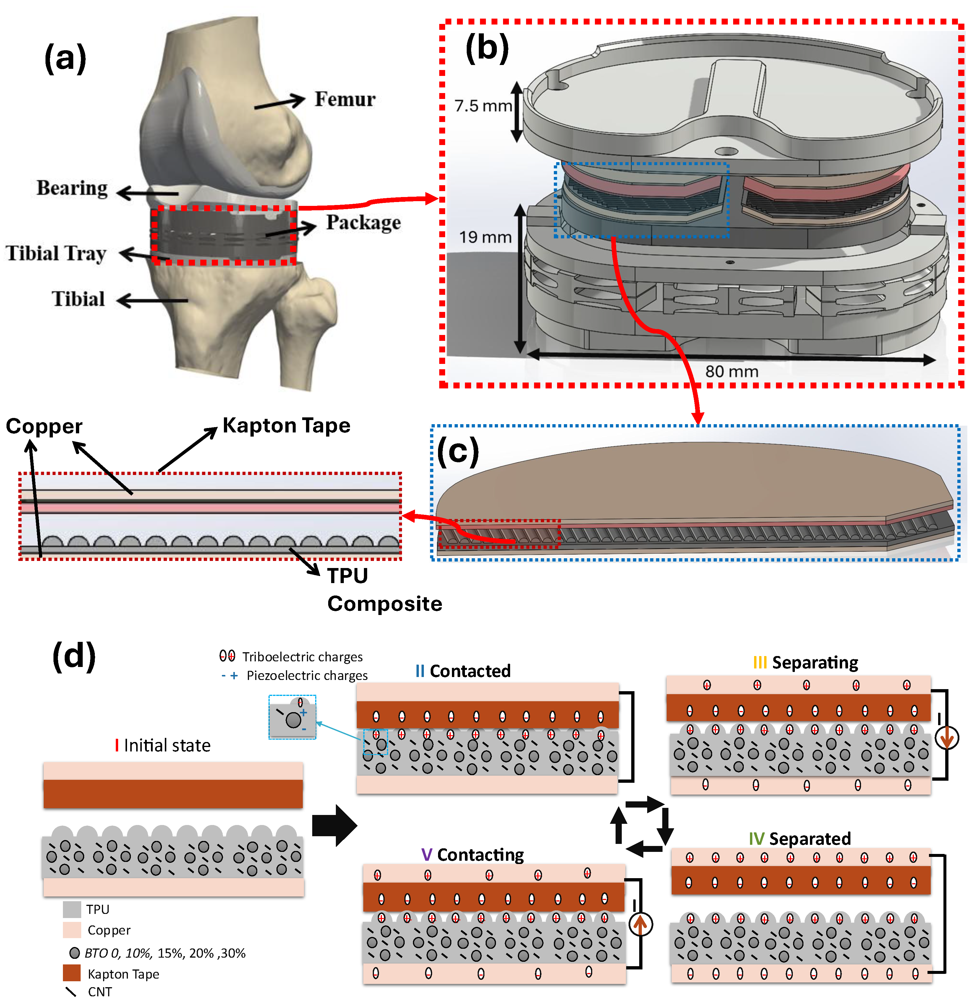 - Abdalla, O.; Chahari, M.; Azami, M.; Ameli, A.; Salman, E.; Stanacevic, M.; Willing, R.; Towfighian, S. 3D printed CNT/TPU triboelectric nanogenerator for load monitoring of total knee replacement. Smart Mater. Struct. 2025, 34, 065030. [Google Scholar] [CrossRef]