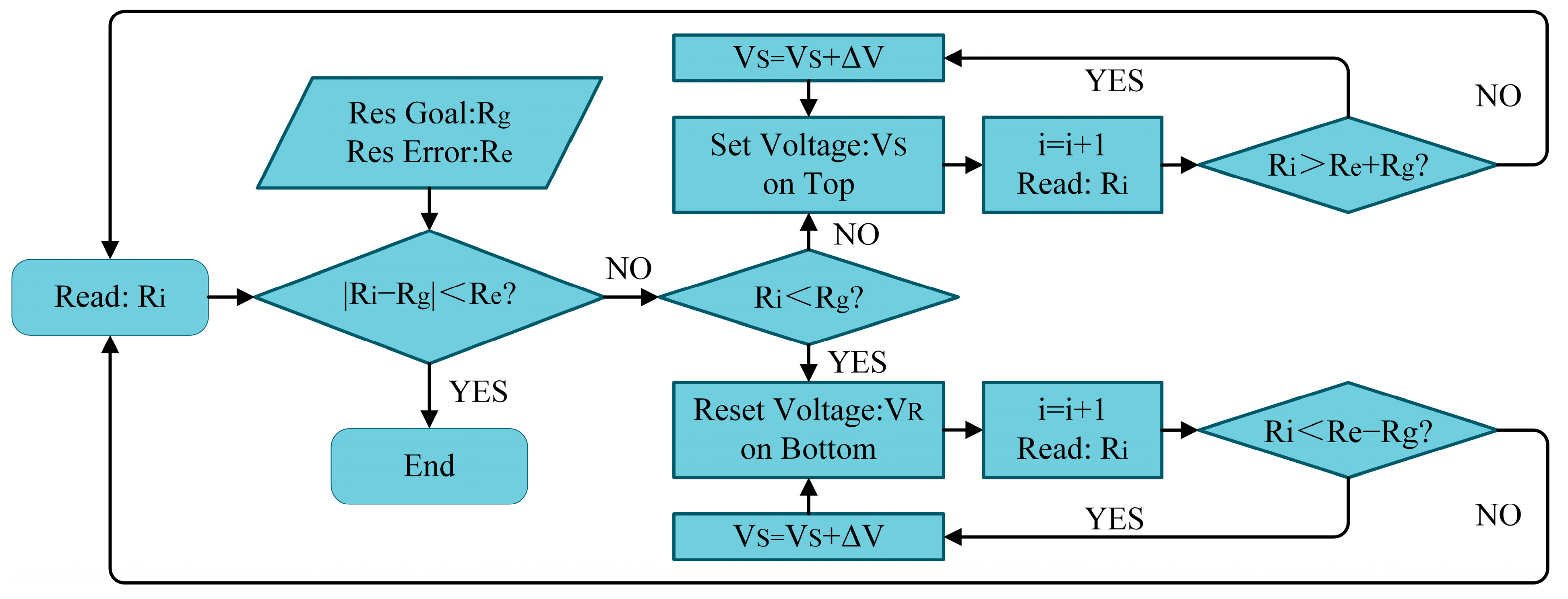 - Sun, J.; Wang, Z.; Gao, J.; Shan, L.; Wang, Q.; Yang, Y.; Cai, Y.; Huang, R. ASAP: An Efficient and Reliable Programming Algorithm for Multi-level RRAM Cell. In Proceedings of the 2024 IEEE International Reliability Physics Symposium (IRPS), Grapevine, TX, USA, 14–18 April 2024; pp. 1–4. [Google Scholar]