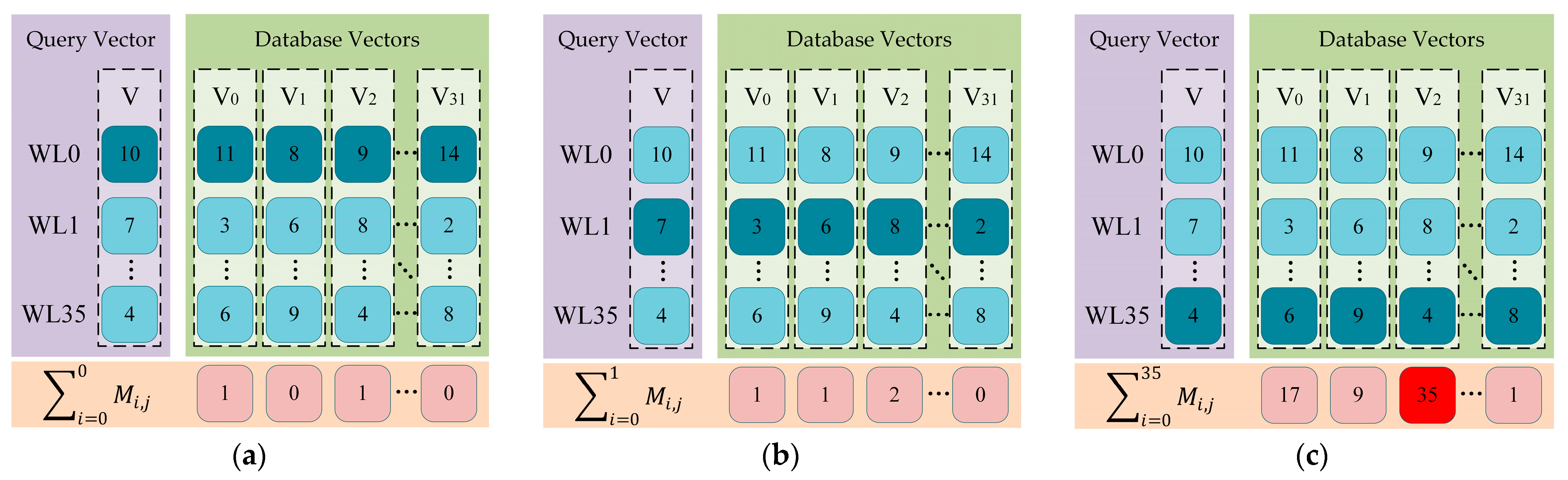 - Hierarchical Search Strategy: This approach employs a two-stage search pipeline to optimize for recall and precision, respectively. The first stage utilizes a larger voltage window to scan the entire memory array, aiming to generate a candidate set while minimizing missed detections. The second stage then applies a significantly narrower voltage window exclusively to this candidate set, performing a fine-grained search to select the optimal match by increasing the matching standard, thereby effectively reducing mismatches;