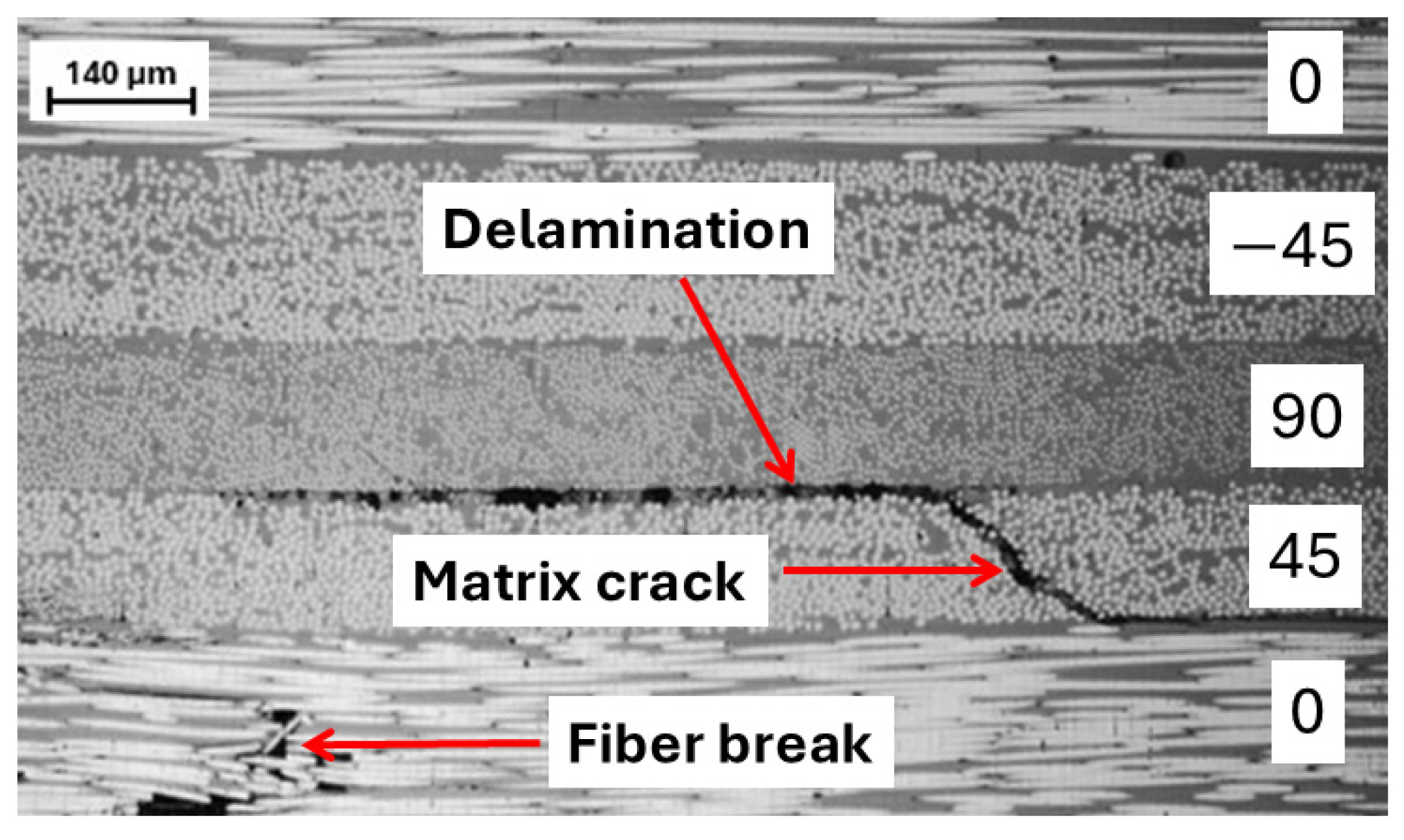 - Rao, P.S.; Hardiman, M.; O’Dowd, N.P.; Sebaey, T.A. Comparison of progressive damage between thermoset and thermoplastic CFRP composites under in-situ tensile loading. J. Compos. Mater. 2021, 55, 1473–1484. [Google Scholar] [CrossRef]
