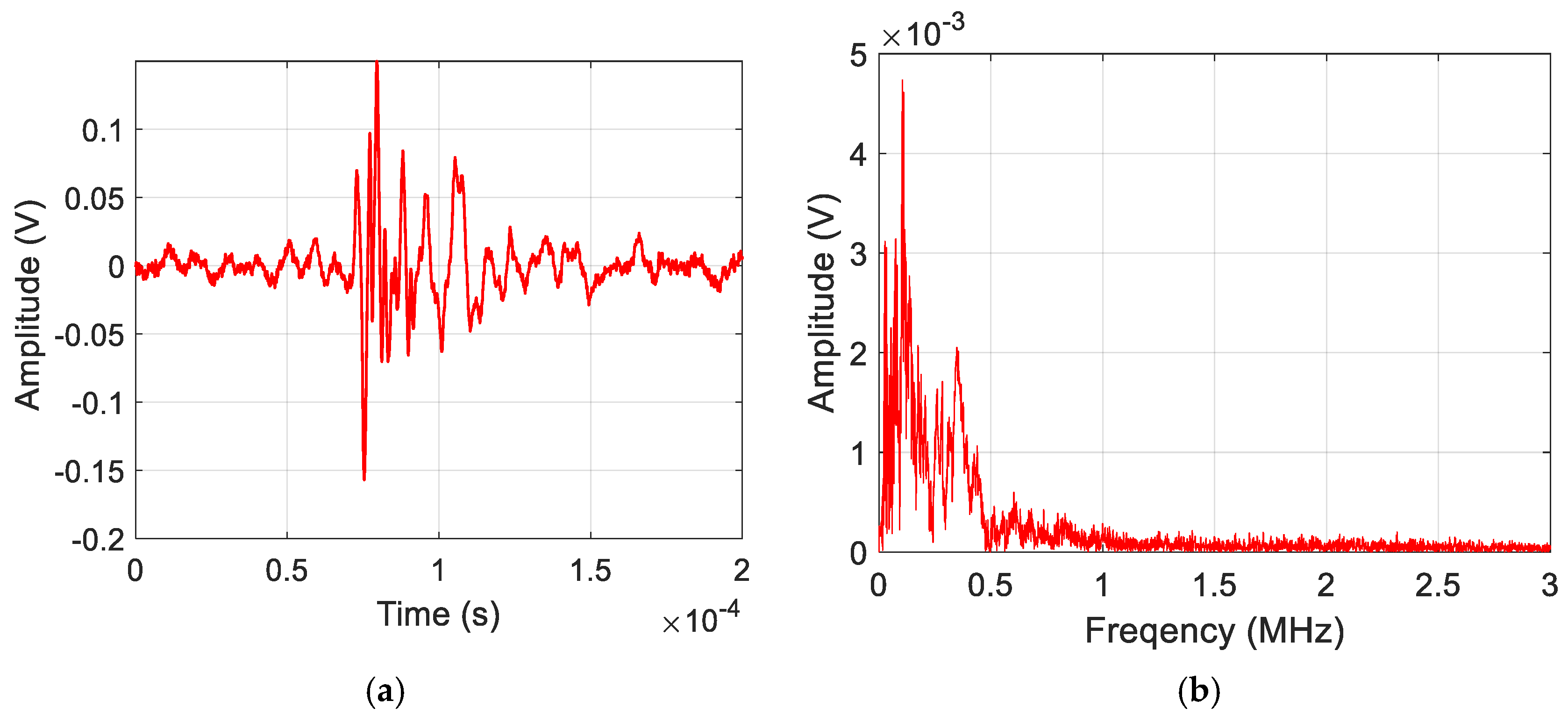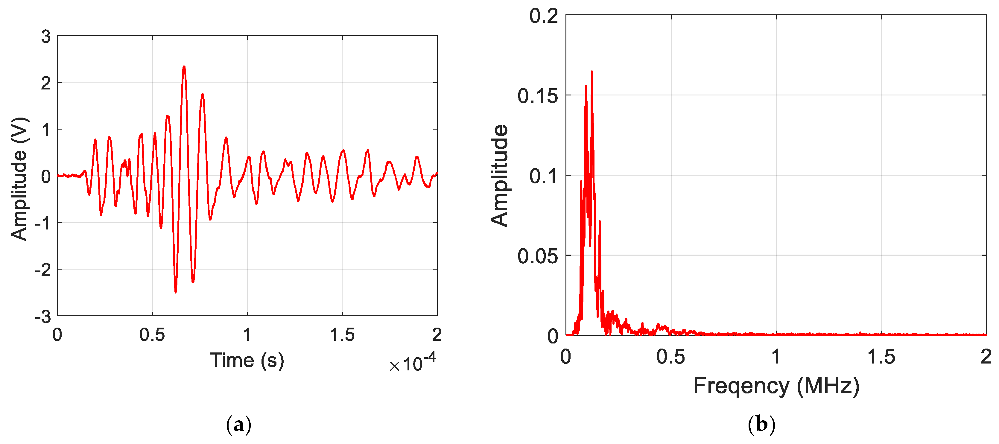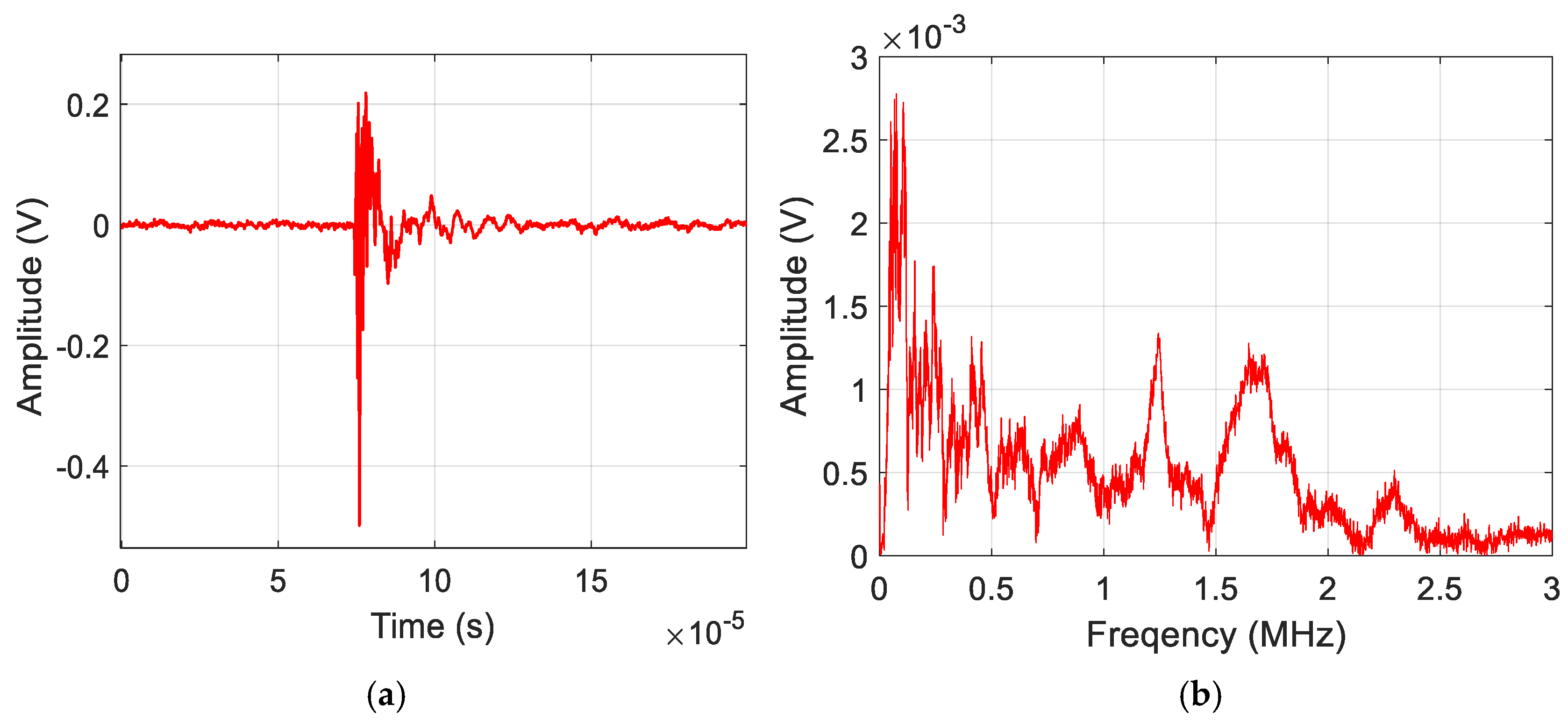 - Asamene, K.; Hudson, L.; Sundaresan, M. Influence of attenuation on acoustic emission signals in carbon fiber reinforced polymer panels. Ultrasonics 2015, 59, 86–93. [Google Scholar] [CrossRef] [PubMed]
