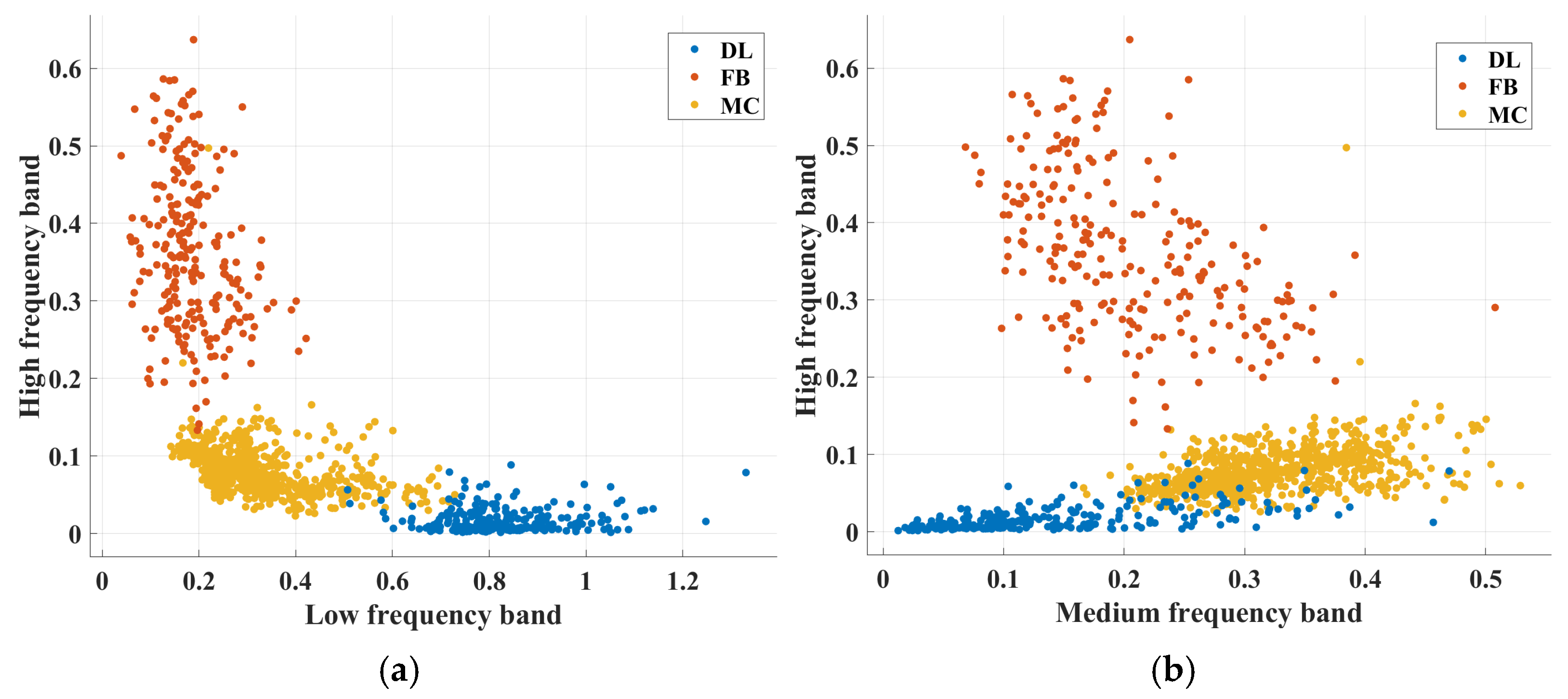 - Godin, N.; Huguet, S.; Gaertner, R.; Salmon, L. Clustering of acoustic emission signals collected during tensile tests on unidirectional glass/polyester composite using supervised and unsupervised classifiers. NDT E Int. 2004, 37, 253–264. [Google Scholar] [CrossRef]