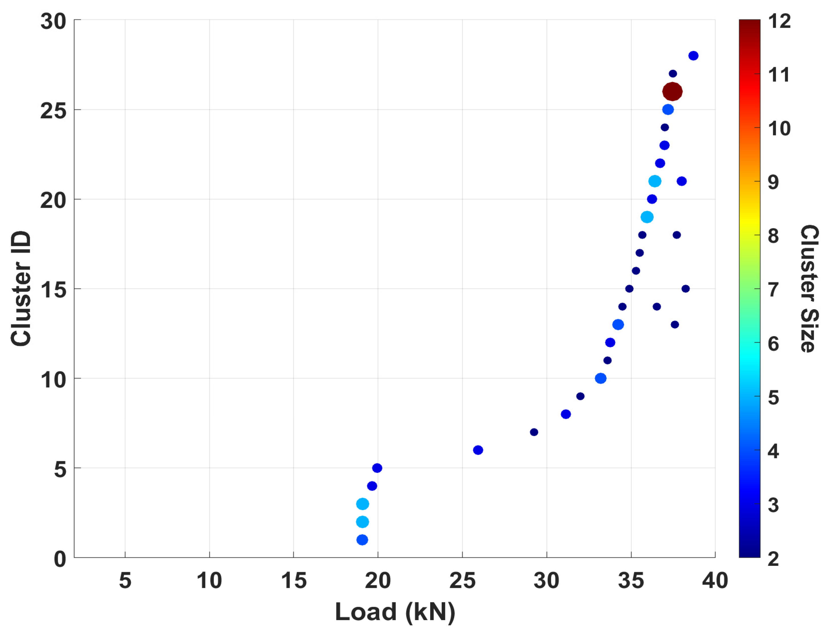 - Whitlow, T.; Sundaresan, M. Clustering of Fiber-Break Related Events in Carbon Fiber Reinforced Polymer Composites Using Acoustic Emission. J. Acoust. Emiss. 2017, 34, 52–63. [Google Scholar]