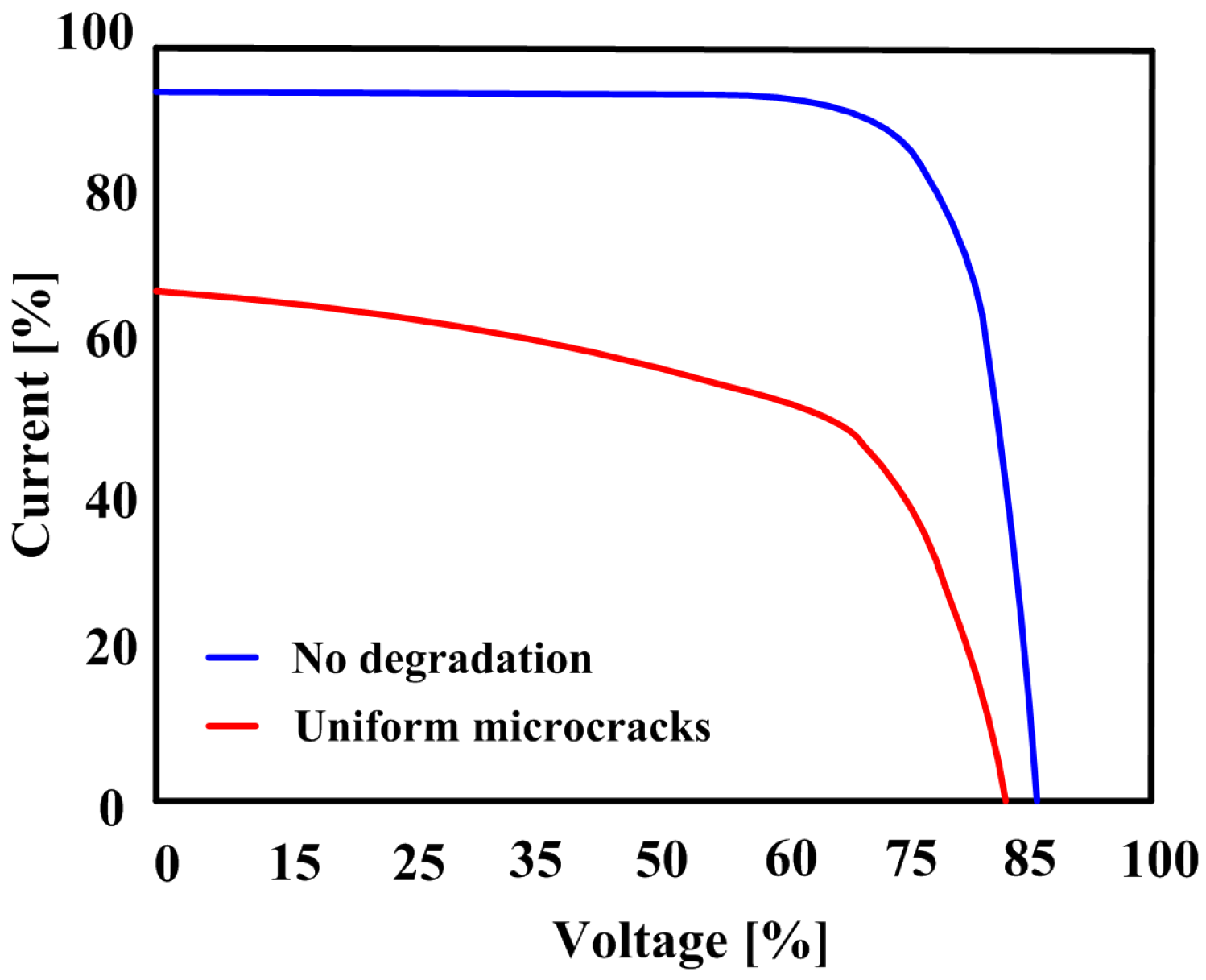 curve exhibits two distinct peaks, a signature feature that emerges when two panels are degraded. Markers were placed on these peaks to enable easy identification of changes in the positions and magnitudes of key feature points within the complex waveform.