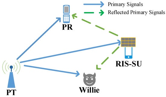 As a key technology for solving the security issues of CRNs, covert communications have received attention in recent years [20,21,22]. Although traditional encryption methods can ensure the security of transmitted messages, they cannot hide the very existence of wireless communication links [23]. This limitation highlights the importance of covert communications. Kang et al. have performed theoretical research that analyzed the inherent constraints of covert communications and have proposed the square root law, which is a theoretical foundation for covert communications [22].