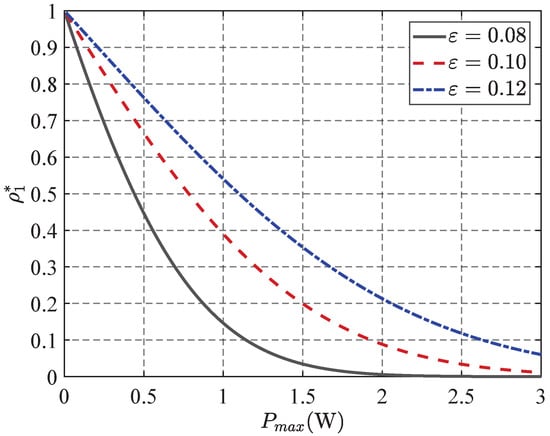 In addition, the three curves in the figure correspond to different covert constraint levels. It can be seen that stricter constraints (indicating a more conservative transmission strategy) lead to lower overall transmission probability and the need to further restrict transmission frequency in the high-power range.