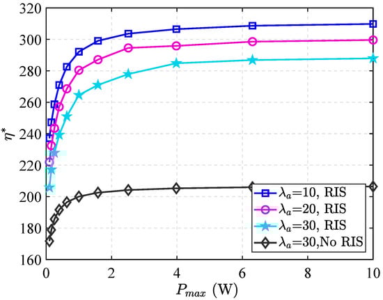 Furthermore, it is readily apparent that the transmission probability is positively correlated with transmit power within the evaluated PT power range. This trend suggests that a higher transmission probability increases the adversary’s probability of detection. Notably, when the RIS is not deployed, the ECT is lowest at all power levels, demonstrating the critical role of the RIS in improving the system’s ECT.
