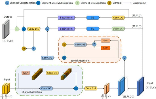 where denotes the Sigmoid function and represents the channel-wise concatenation operation. Finally, the features are enhanced via a residual connection: