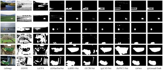 The proposal of Fully Convolutional Networks (FCNs) directly addressed the aforementioned bottlenecks. Through a fully convolutional encoder–decoder architecture, they achieve end-to-end mapping from an entire input image to a pixel-level output, completely abandoning the patching operation. Liu and Pun [15] proposed a splicing tamper localization model based on a cascade of a multi-scale Fully Convolutional Network and a Conditional Random Field (FCNs–CRF). It extracts deep features using three FCNs with different scale sensitivities and combines them with a CRF to adaptively fuse the multi-scale prediction results. However, FCNs–CRF lacks the ability to learn the tampered region’s edges, leading to suboptimal feature fusion performance. Considering that image splicing detection is essentially a pixel-level binary classification task, Bi [13] proposed a method combining a Ringed Residual U-Net (RRU-Net). RRU-Net constructs cross-level feature interaction channels through forward propagation in residual paths and backward connections in residual feedback paths, achieving multi-level reuse of features within the network. However, experimental results showed that on the COLUMBIA dataset, the detected tampered regions exhibited discontinuities and blurred boundaries, indicating a limited ability to capture fine-grained structures. Although the ManTra-Net model proposed by Wu et al. [14] extracts feature patterns of 385 known manipulation types through self-supervised learning, it lacks detailed information for localizing the tampered region.