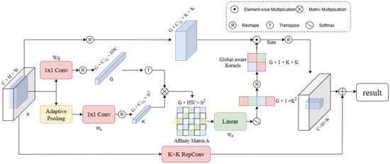 In addition, ContMix is incorporated to adaptively adjust the shape and size of convolutional kernels, thereby enhancing flexibility in feature extraction. CAFMAttention is also introduced to effectively model long-range dependencies and strengthen local feature extraction while maintaining computational efficiency. Furthermore, AKConv is adopted, which accommodates arbitrary kernel shapes and sizes through flexible initial sampling and learnable offsets, thereby improving feature extraction capability and adaptability to objects with diverse shapes [45].