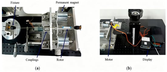 Table 1 summarizes the geometric parameters of the rotor and the driving magnets, which were used to calculate the rotor’s moment of inertia. Based on these values, the rotor moment of inertia was calculated as 1.769 × 10−8 kg·m2.