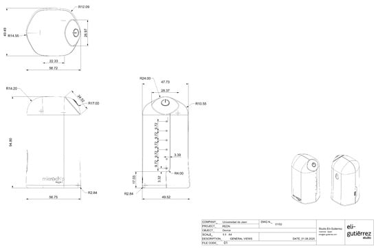 The mechanical enclosure of the wristband has been designed with compactness and wearability in mind. According to the technical drawing, shown in Figure 3, the device exhibits the following dimensions: