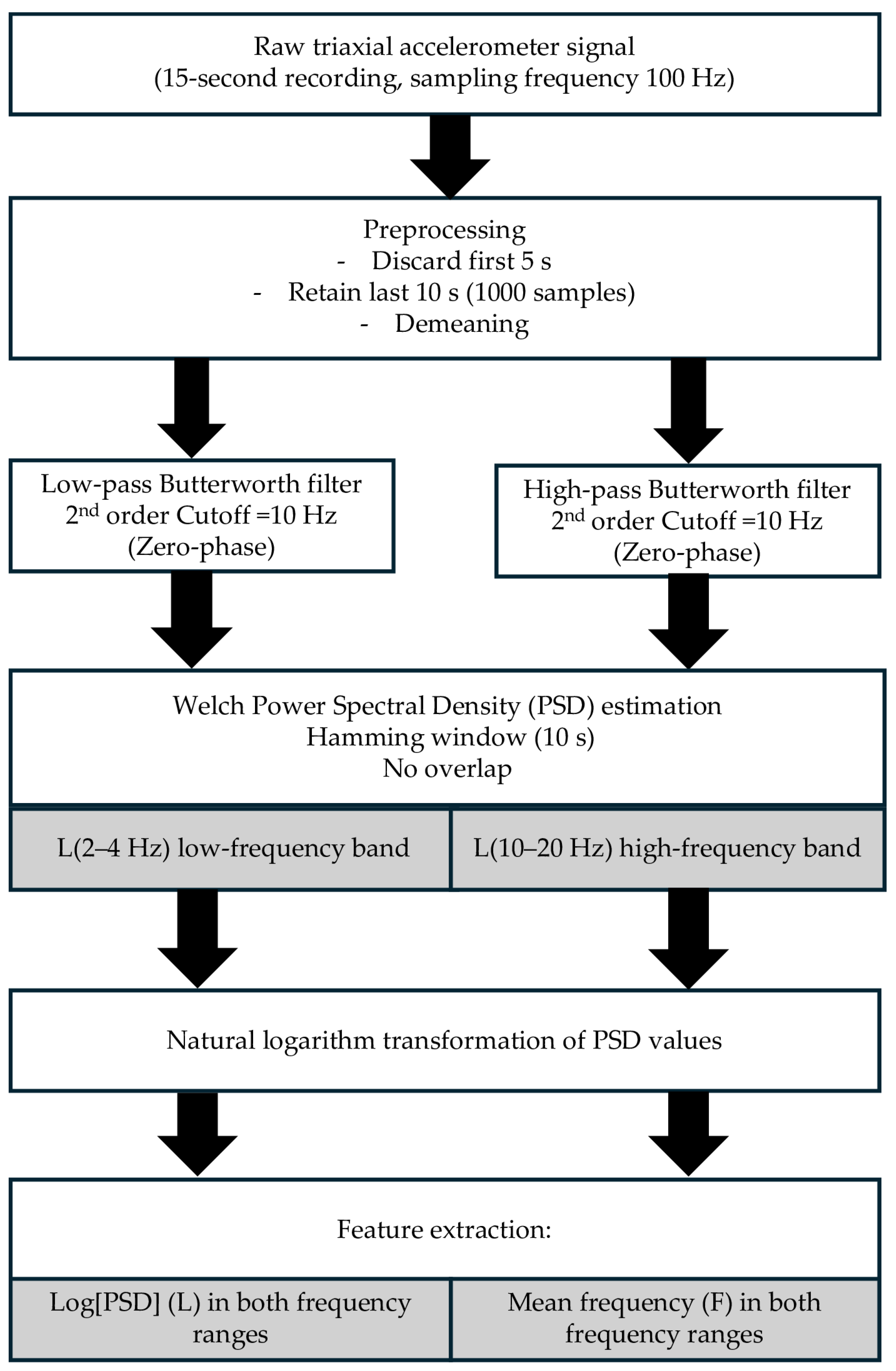 - Kuliś, S.; Pietraszewski, P.; Callegari, B. Characteristics of Post-Exercise Lower Limb Muscle Tremor Among Speed Skaters. Sensors 2025, 25, 4301. [Google Scholar] [CrossRef]