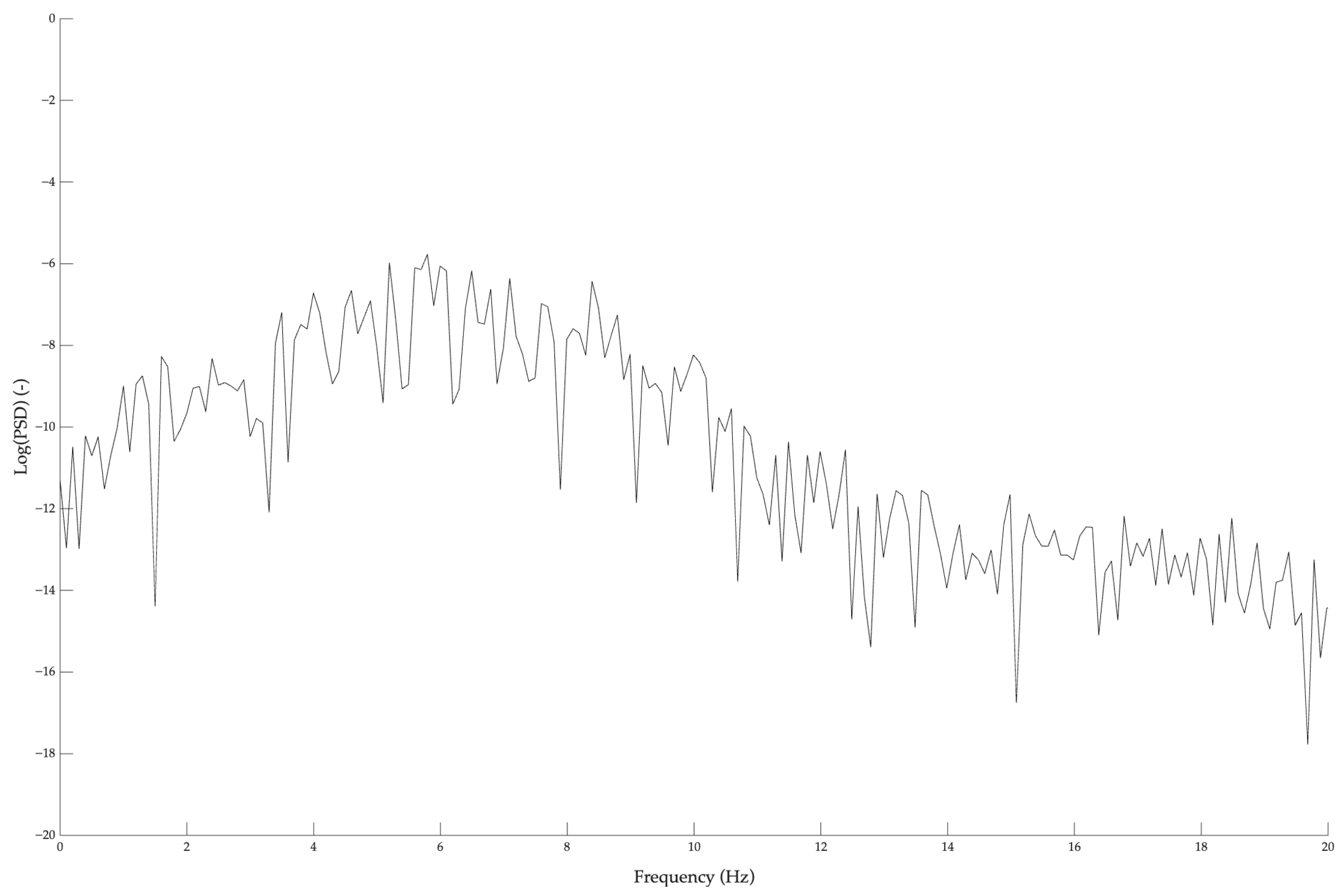 - − The logarithmic amplitude indicator, L(f1, f2), was computed as the mean of the natural logarithm of the PSD values within each predefined frequency band of interest (2–4 Hz and 10–20 Hz), as described by Gajewski and colleagues [34]: