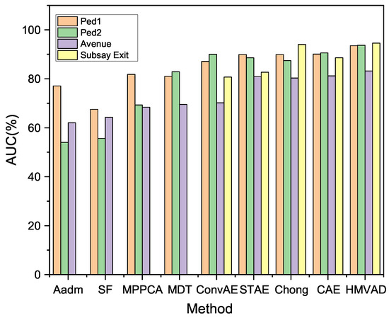 - Hasan, M.; Choi, J.; Neumann, J.; Roy-Chowdhury, A.K.; Davis, L.S. Learning temporal regularity in video sequences. In Proceedings of the IEEE Conference on Computer Vision and Pattern Recognition, Las Vegas, NV, USA, 27–30 June 2016; pp. 733–742. [Google Scholar]