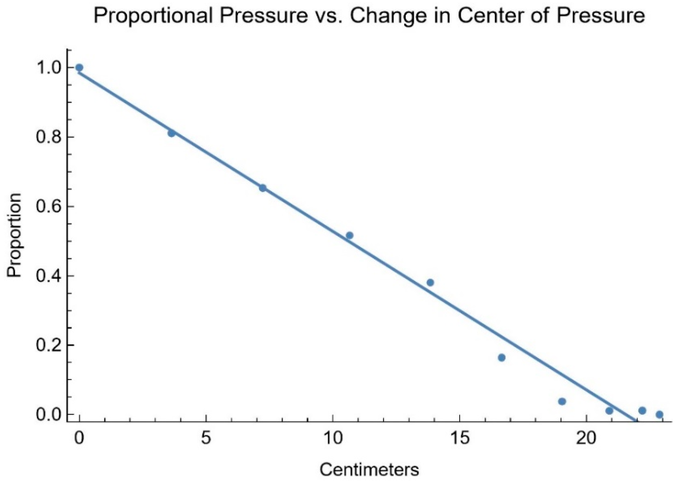 The slope estimates for the SIP–CoP relationship can be used to calculate threshold values of CoP magnitude for whatever proportional decrease in pressure is deemed an effective PR by simply dividing the proportional change by the slope. For example, achieving a 90% reduction in pressure would require a CoP magnitude of 12.33 cm for a forward lean, 8.65 cm for a leftward lean, and 7.45 cm for a rightward lean. As proposed in this team’s previous work on classification of PR using changes in CoP [