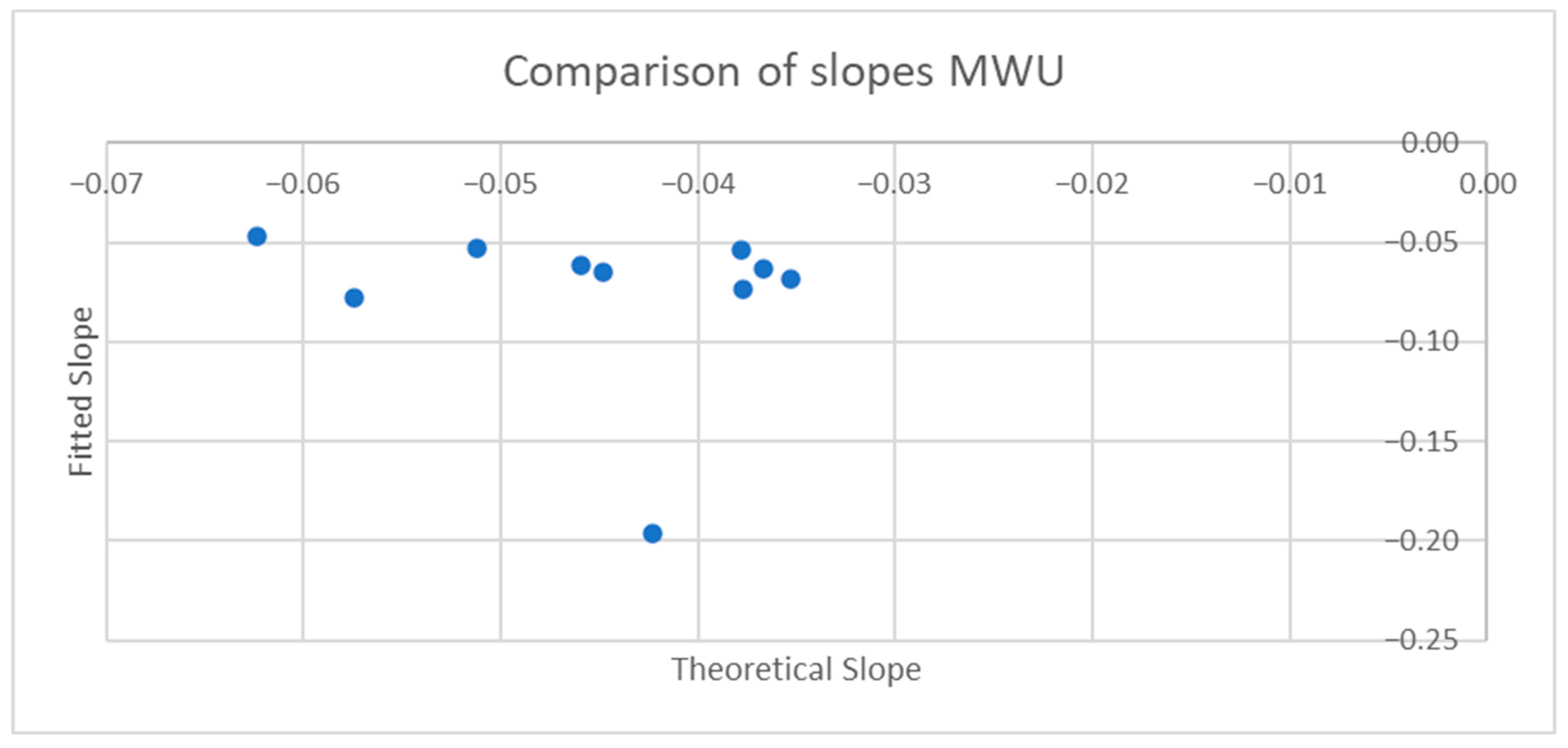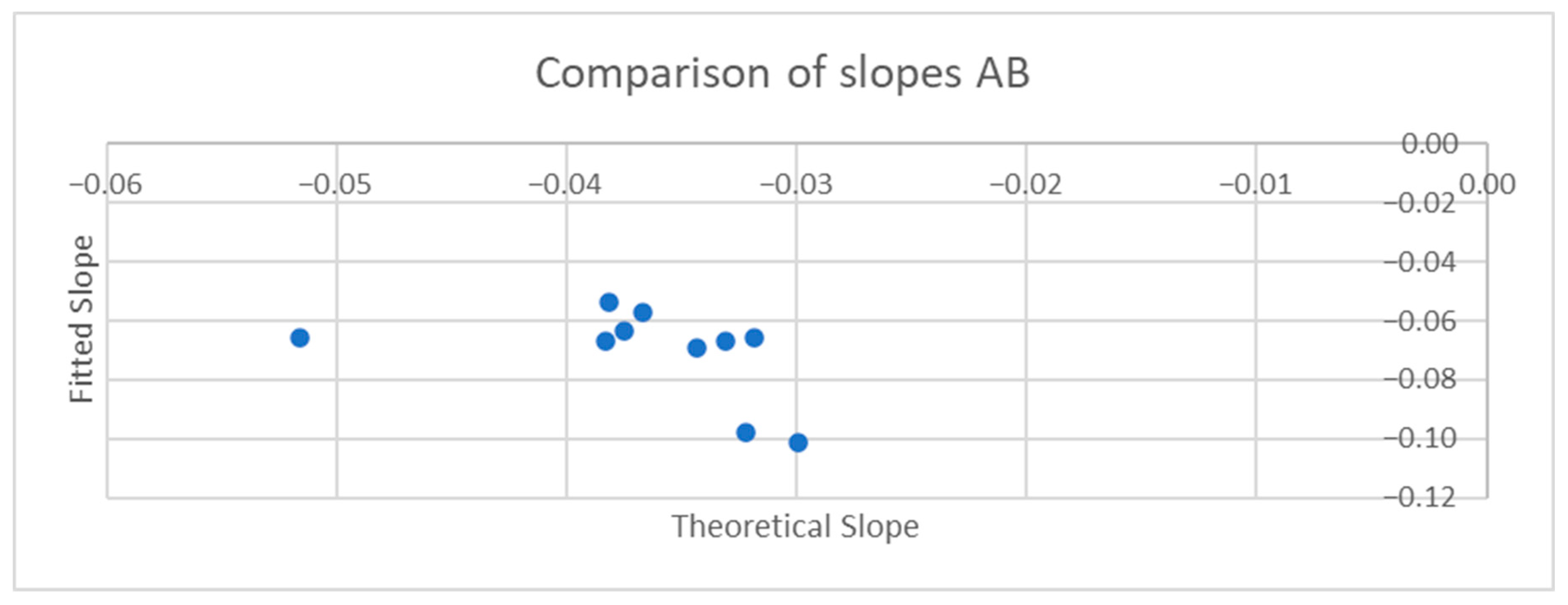Fitting the data to Equation (11) gives with an R2 of 0.9995.