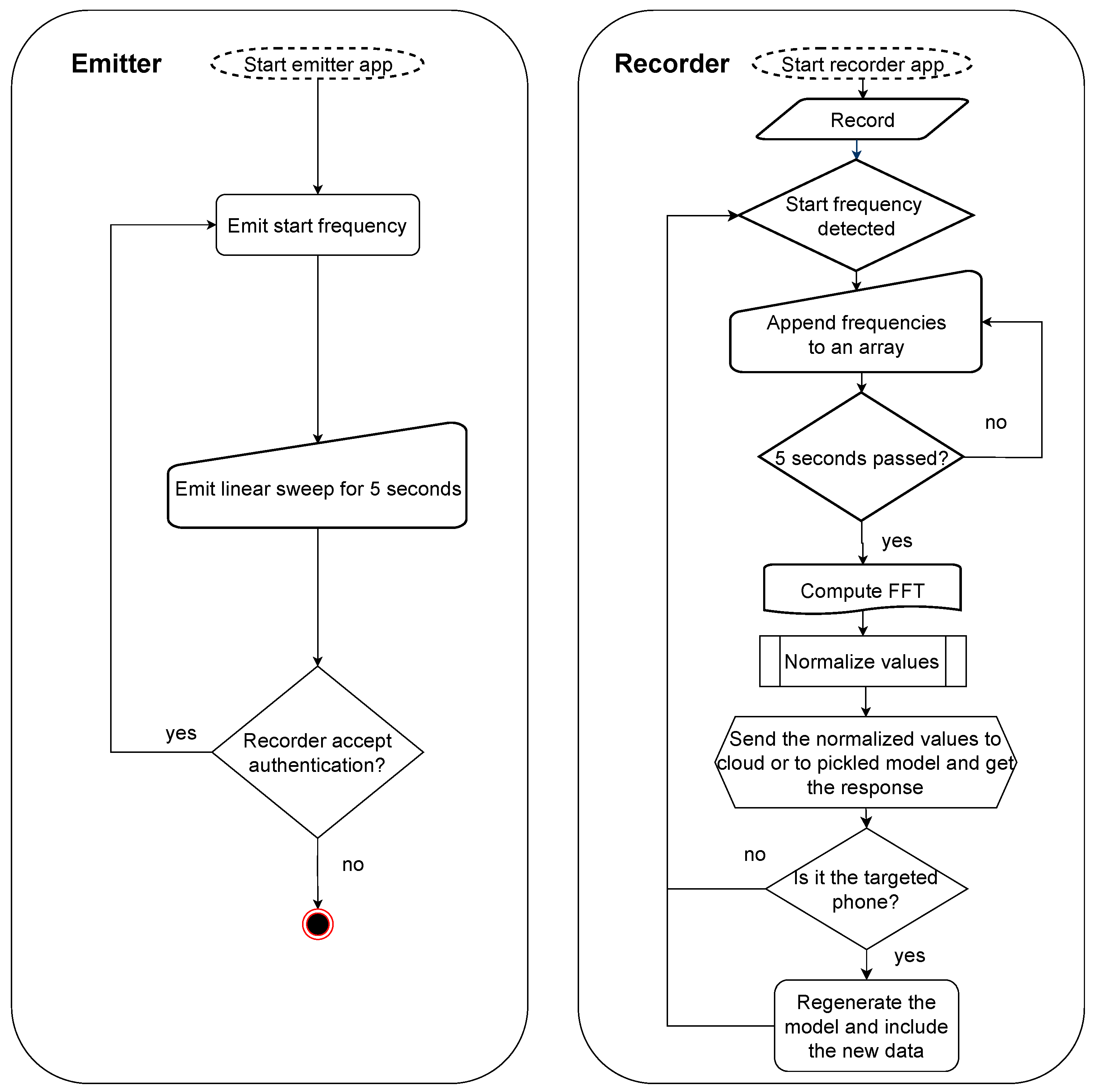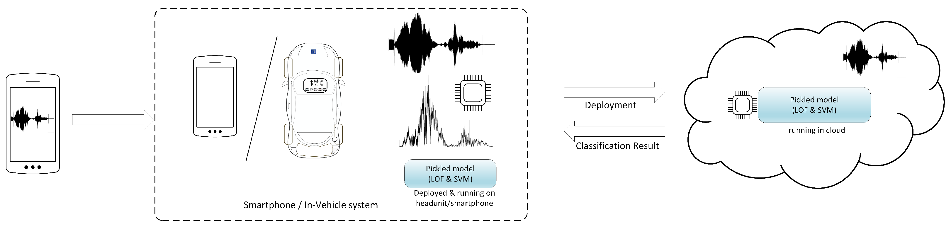 - We present concrete experimental results regarding the recognition accuracy and compare two classifiers against data from multiple devices, including same-model smartphones, using both a smartphone and a headunit to recognize the emitter;