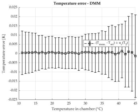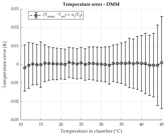 The temperature error in the chamber during the resistance measurement with the DMM. Resistance ratio r = 1