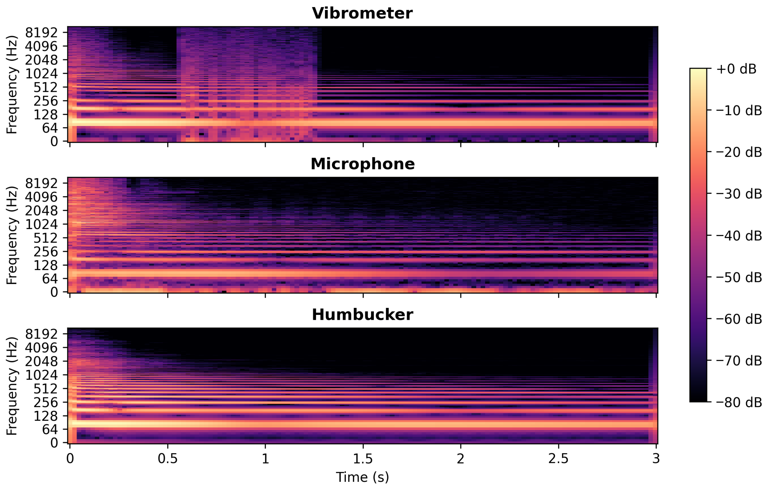 In this study, three sensor technologies—microphone, magnetic pickups, and laser Doppler vibrometry (LDV)—were compared for their ability to capture the vibration of a guitar string under controlled excitation. The results showed that the choice of sensor strongly affects which aspects of string motion can be observed during the transient and decay of string motion.