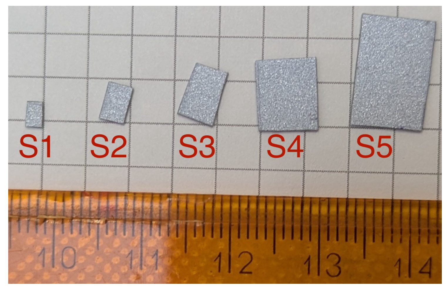 Weighing the whole sheet, calculating the area density, and multiplying it by the area of the used 3 × 4 mm tape yields a weight of 0.0056 g. Comparing this weight to the effective segments of the thicker and thinner strings, 4.4 g and 0.3 g, respectively, demonstrates how this additional weight can pose issues when measuring thin strings. Lighter reflective tapes were also tested but their lack of rigidity caused them to bend and sway when affixed to the string resulting in incorrect measurements. It should also be noted that the sticker can influence the string’s vibration not only through weight but through the increased resistance when moving against the air during vibration.
