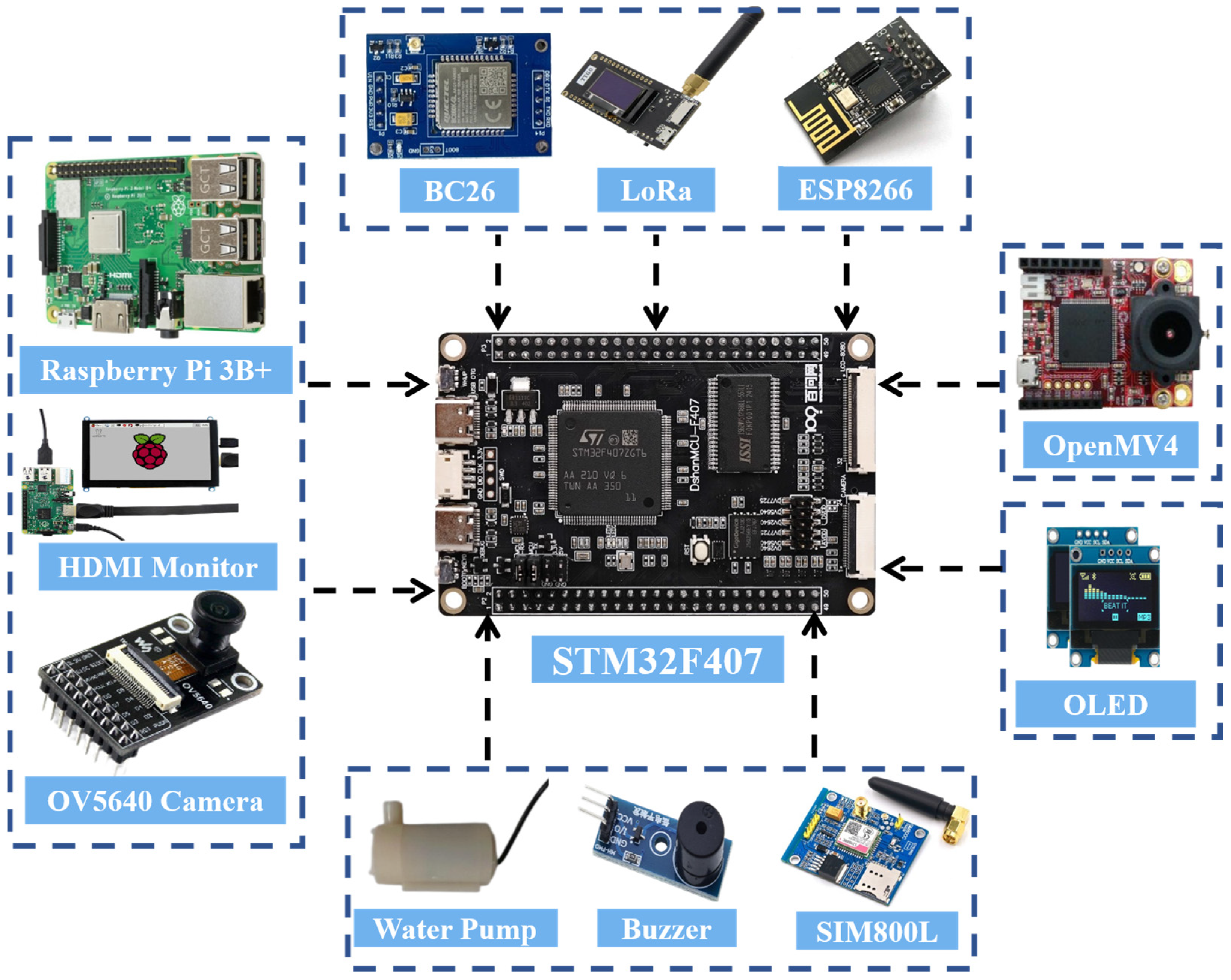 First, a dual-processor configuration (Raspberry Pi + OpenMV) is introduced to achieve computational decoupling: high-load visual recognition tasks are handled by the Raspberry Pi, while OpenMV manages low-power sensing operations. This division prevents resource contention and ensures that sensor data transmission remains stable even when image analysis is active—an essential improvement over conventional single-controller IoT designs.