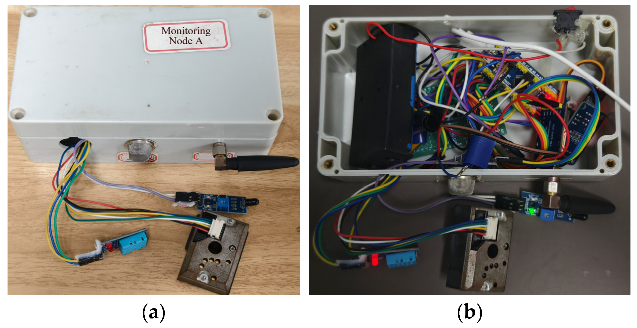 Table 4 were determined through on-site testing and empirical analysis conducted in the chemical gas cylinder laboratory at Hefei University of Technology. During experiments, each environmental variable (including simulated flame, CO, flammable gas, alcohol concentration, temperature, and humidity) was incrementally increased until it reached a level considered hazardous to personnel safety or capable of affecting normal experimental operations and outcomes. These values were thus defined as the system’s alarm thresholds.