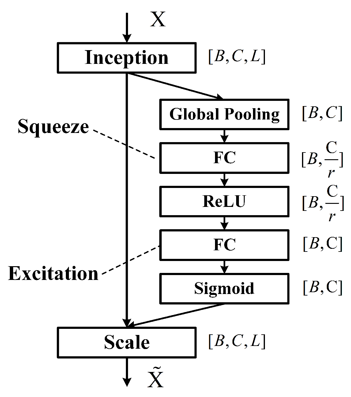 48] attention mechanism to enhance inter-channel feature interaction, achieving efficient extraction and fusion of multi-scale spectral features through multi-layer stacking. We use maximum pooling to reduce the length of feature sequences, thereby reducing computation overload, as shown in