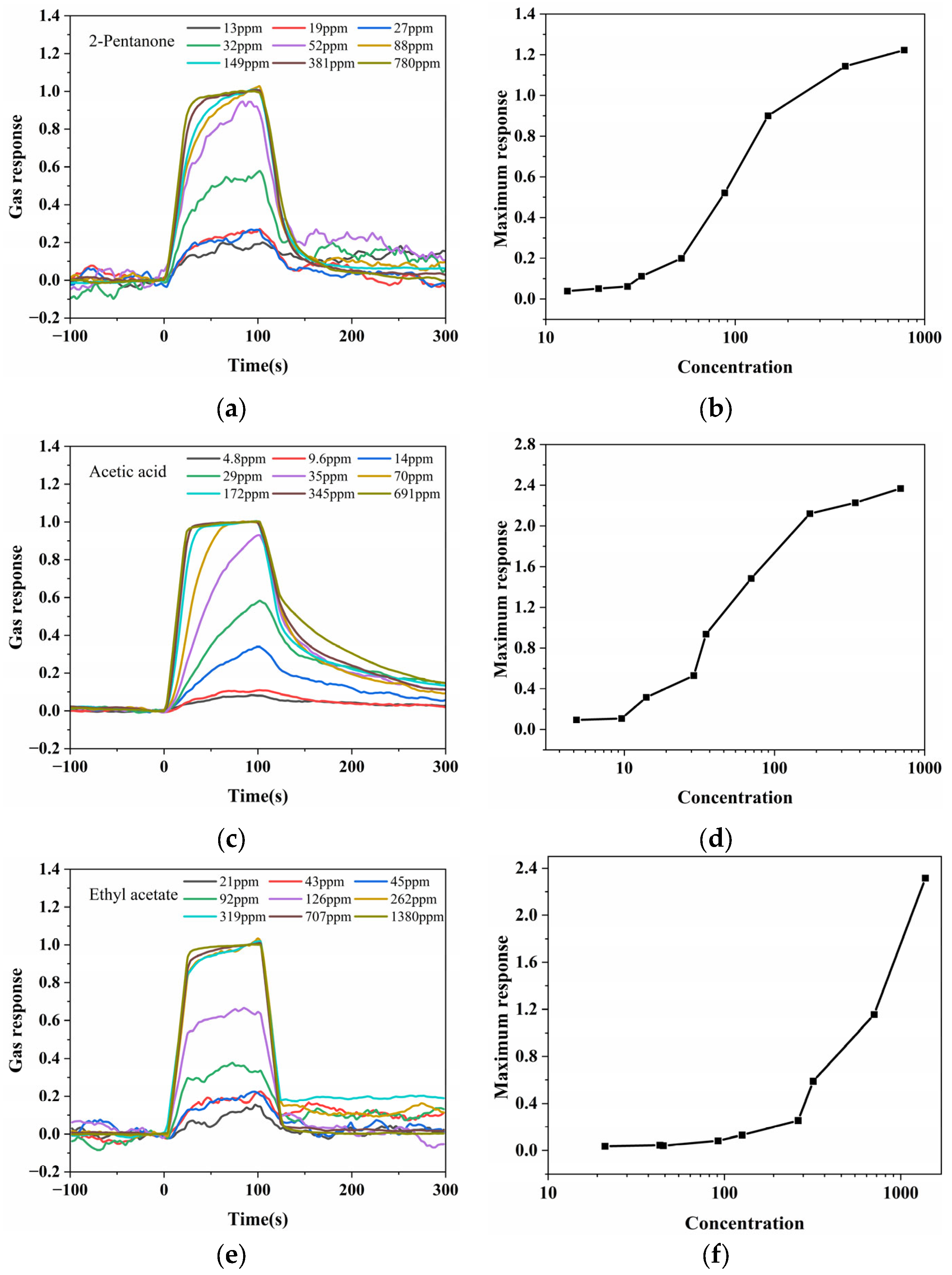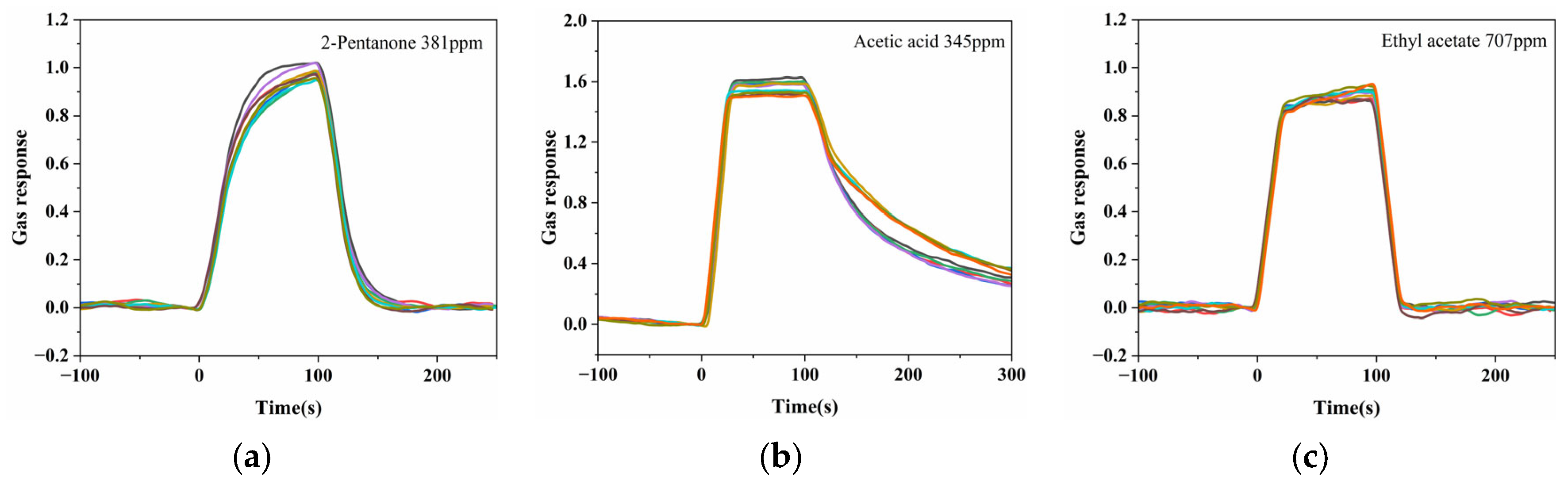 3.2. Gas Sensing Performance of Different VOCs Using the Spectrometer-Based System