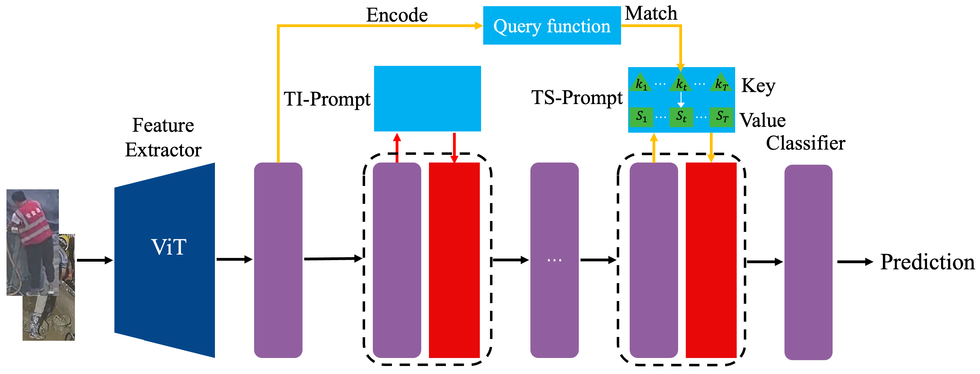 q on the test sample to identify the most suitable task key, subsequently selecting the corresponding TS-Prompt. We use the entire pre-trained model as the query function: